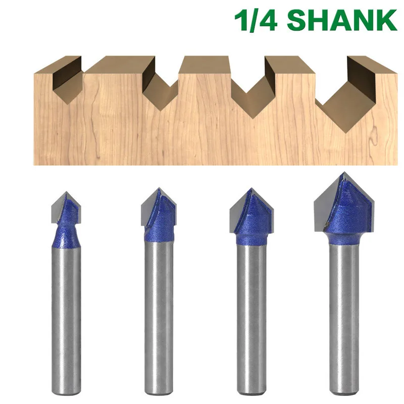 1 шт. 14 ShankProfes 90 degree V Groove Bit 14 "516" 38 "12" гравировальный твердый маршрутизатор карбидный Фрезерный резак для сверления древесины