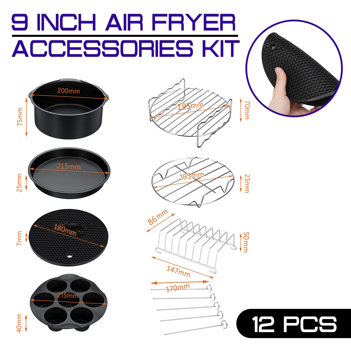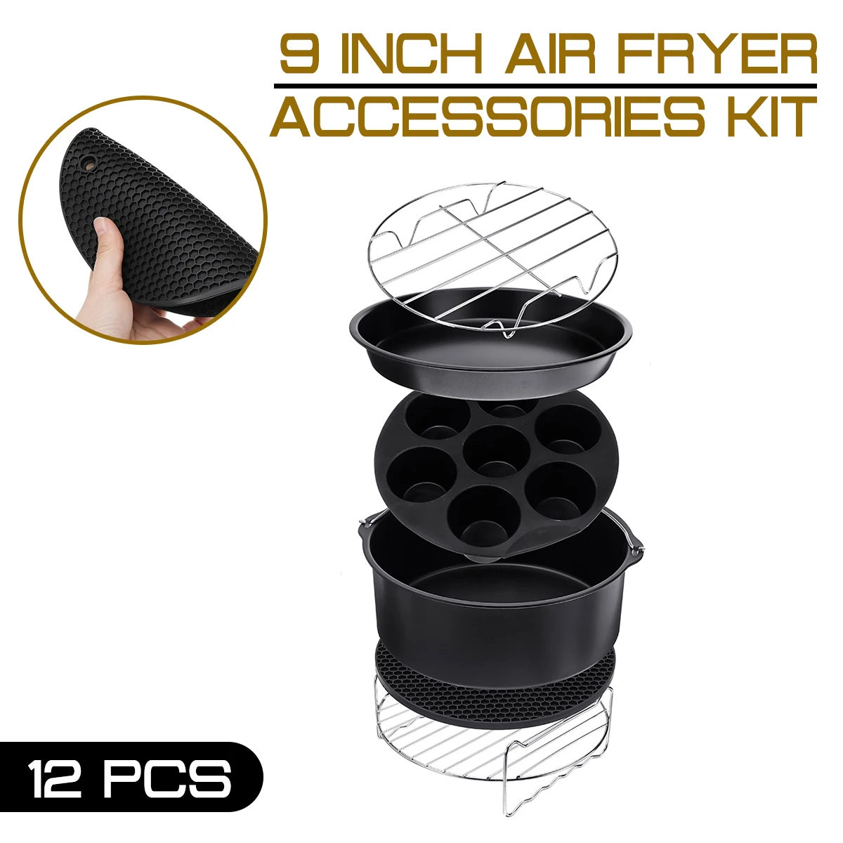 9 дюймов, 12 шт., воздушный фритюрница, аксессуары, подходит для воздушной фритюрницы 5,3-6.8QT, для выпечки, баскетбольная тарелка, гриль, кастрюля, кухонный инструмент для приготовления пищи, вечерние
