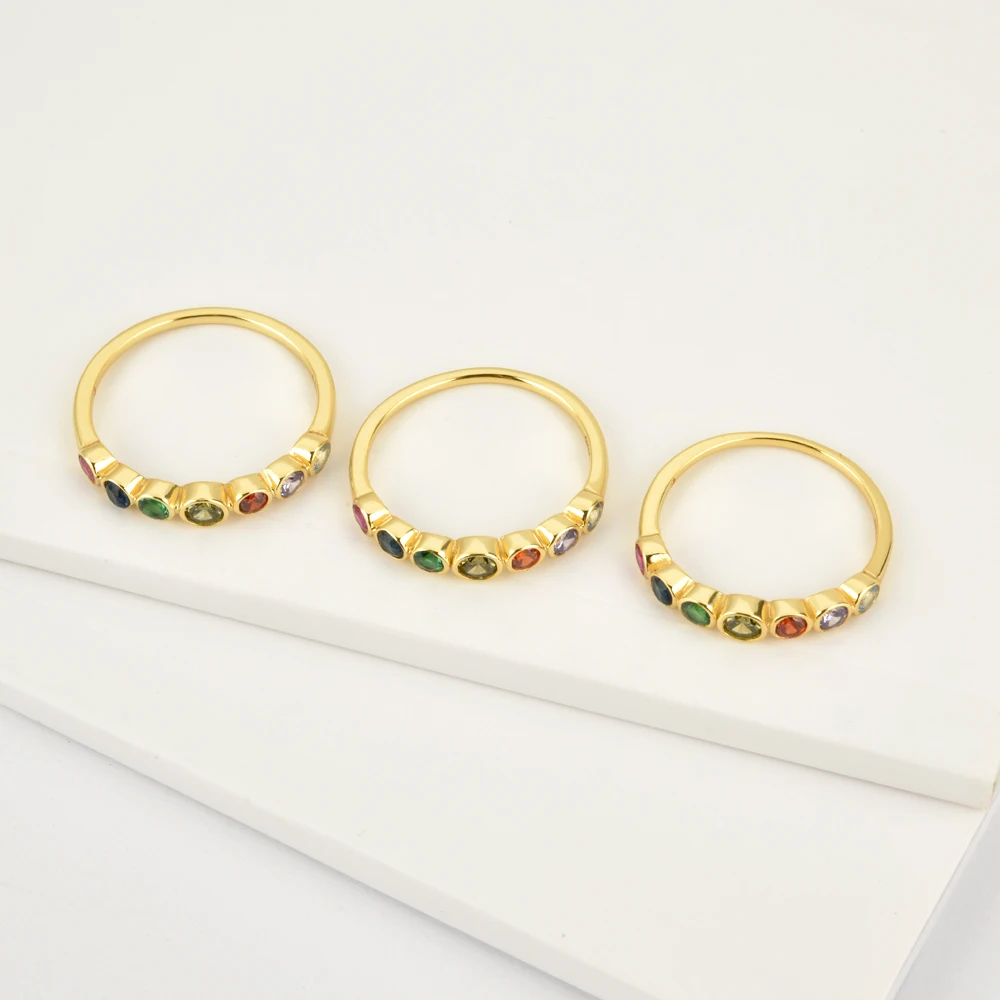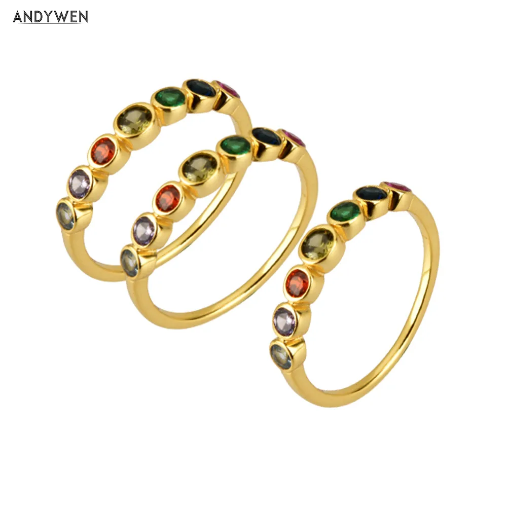 Женское кольцо из серебра 925 пробы с радужными цветными фианитами