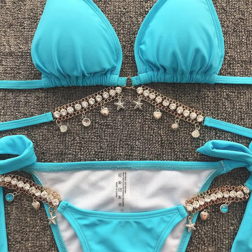 Новинка 2021, яркий бриллиантовый женский купальник с лямкой на шее, комплект бикини из двух предметов, женский купальный костюм