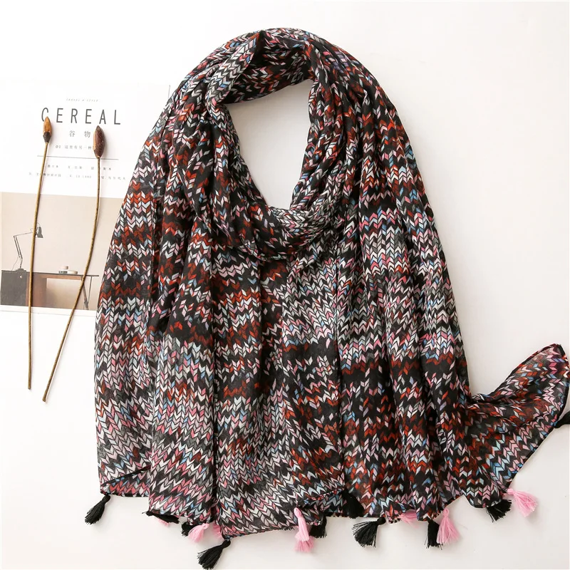 Женский модный ацтекский этнический цветочный шарф с кисточками, Же...