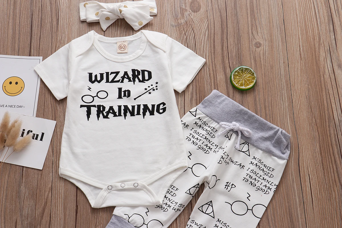 Комплект одежды для новорожденных, милые комплекты для малышей комбинезон + штаны + повязка на голову/шапочка, комплект одежды для малышей из 3 предметов