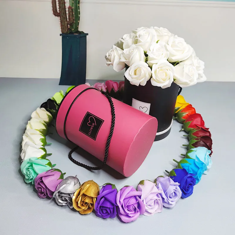 Мыло диаметром 4,5 см, голова розы, красивый подарок на свадьбу, День Святого Валентина, свадебный букет, украшение для дома, бумажная ручка с цветами, ведро для объятий