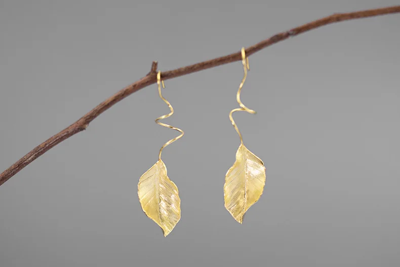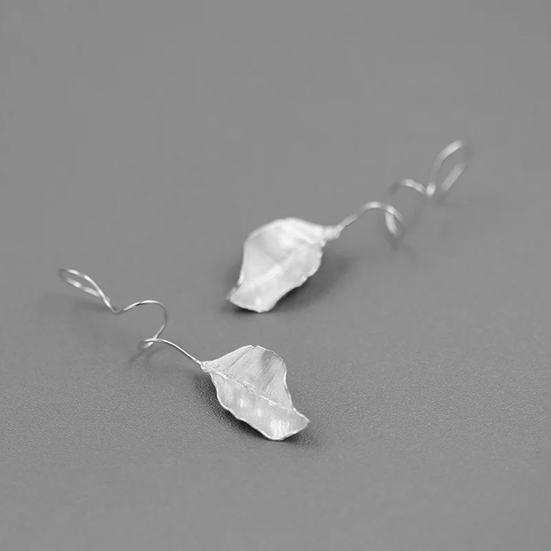 Женские серьги-подвески с листьями из серебра 925 пробы
