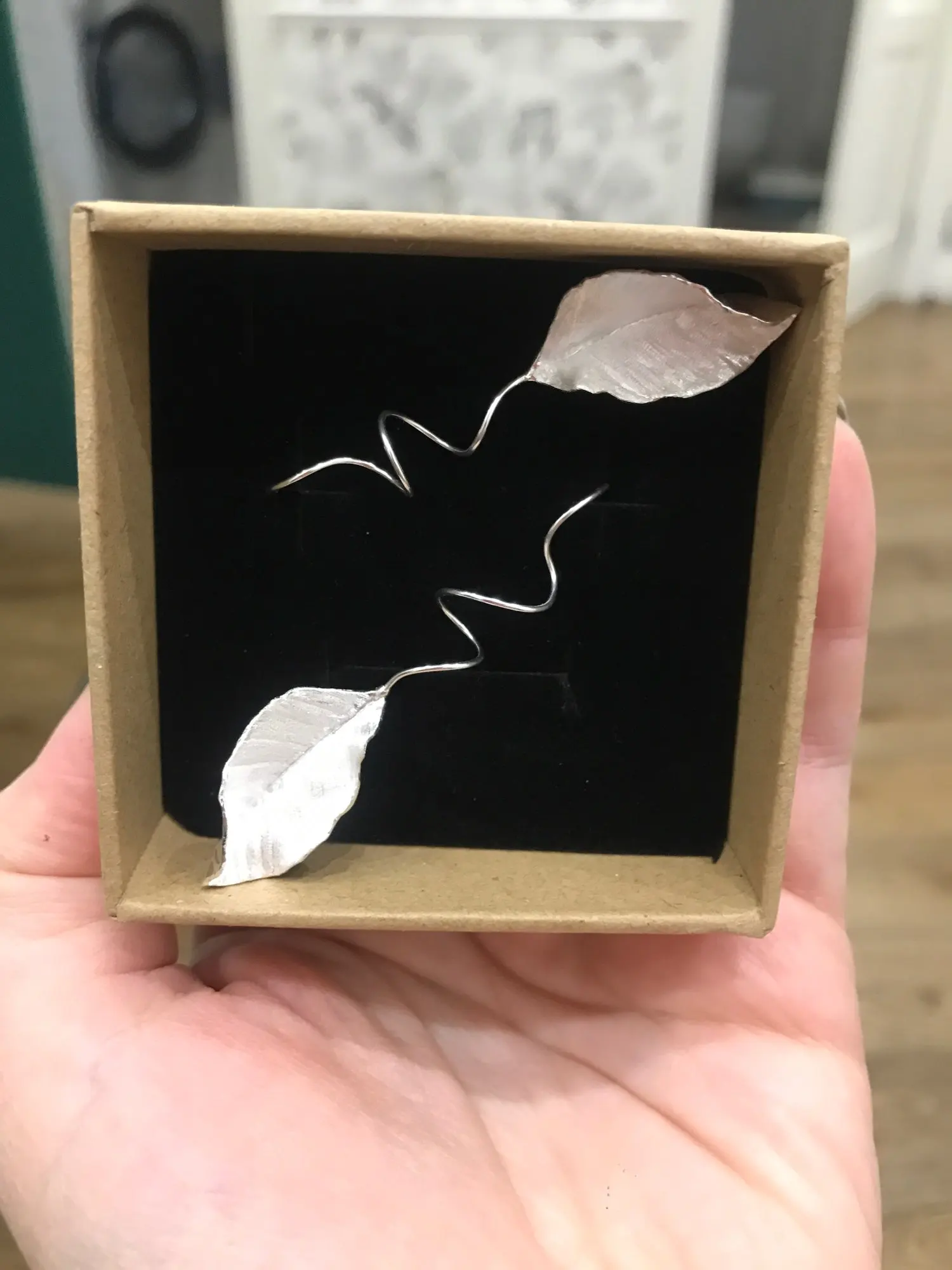 Хорошие сережки. Единственный момент - они матовые с лицевой стороны, а оборотный лист глянцевый, было бы интереснее, если бы он тоже был матовый. В любом случае, покупкой очень довольна, хорошо упакована, плюс сережки были в красивой коробочке, в которой можно и подарить. Ещё стоит проба серебра, что тоже является плюсом.