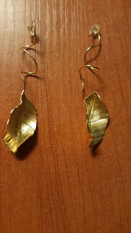 Получила оч.быстро!!Заказала 6.11,получила 20.11.СПАСИБО Продавцу!!!Очень нравятся они мне.Оригинальный дизайн,дорого(13.22€) но зато похожи на золото.Листик внутри меньше блестит с лицевой стороны матовое желтое(как 750 проба),сзади блестит,но это и хорошо что видимая сторона матовая.На обороте проба S925.