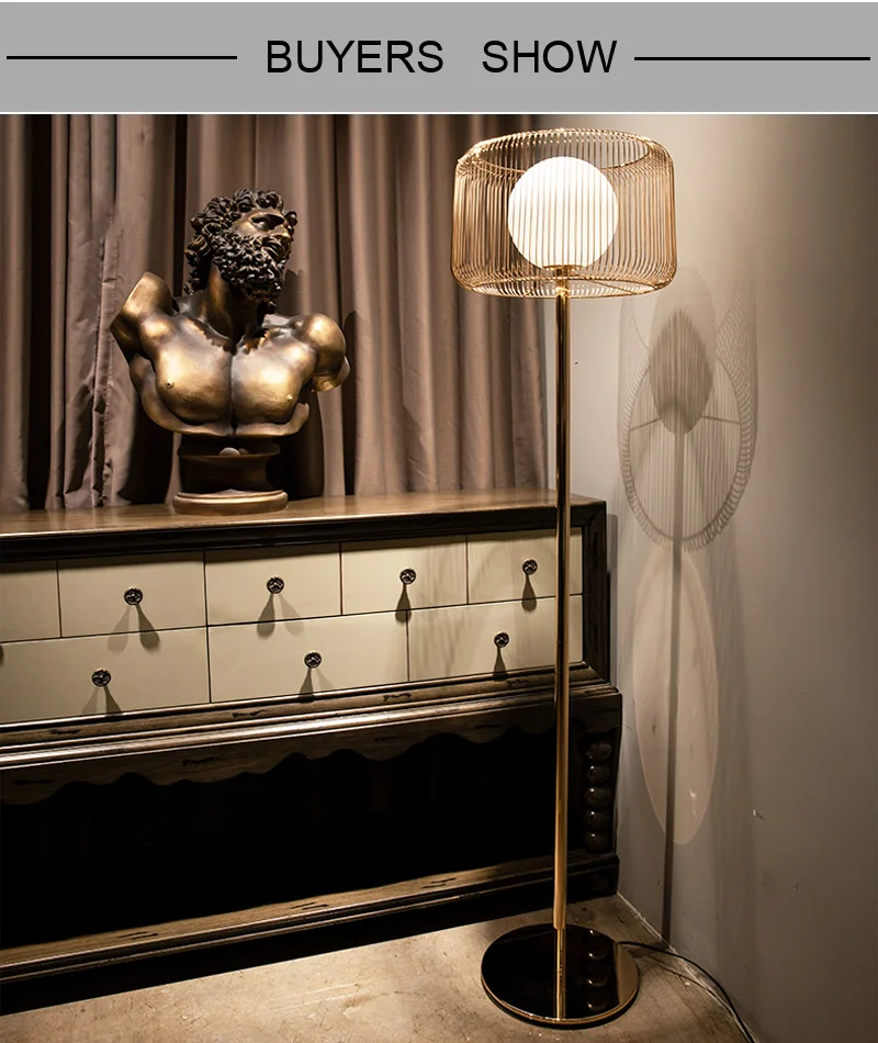 Параметры Простая креативная Современная стоящая лампа Светильник Размер: Dia.50cm * H.150cm Светильник источник: E27 светодиодный потолочный светильник Материал: металл/стекло Светильник золотого цвета Применение: Отель, офисный зал Чайный домик чайный бар Домашний декор осветительный прибор для гостиной паба Посылка включает в себя: 1 шт. простая современная напольная лампа