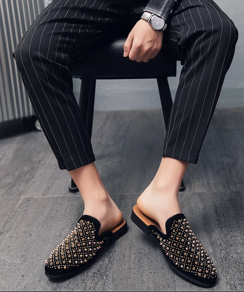 Летние мужские повседневные туфли; Новые крутые шлепанцы для мужчин; Мужские лоферы; Мужские полушлепанцы; Нескользящие тапочки мюли на плоской подошве; Zapatos
