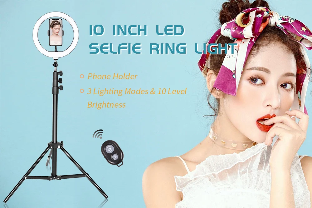 Светодиодный осветитель для селфи, кольцесветильник ильник 10 дюймов со штативом для смартфона, макияжа, видео-студийной кольцо для штатива
