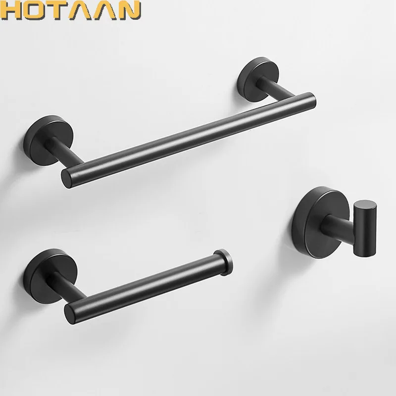 Черный набор аксессуаров для ванной из нержавеющей стали, крючок для халата, держатель для бумаги, полотенцесушитель, аппаратное приспособление для ванной комнаты