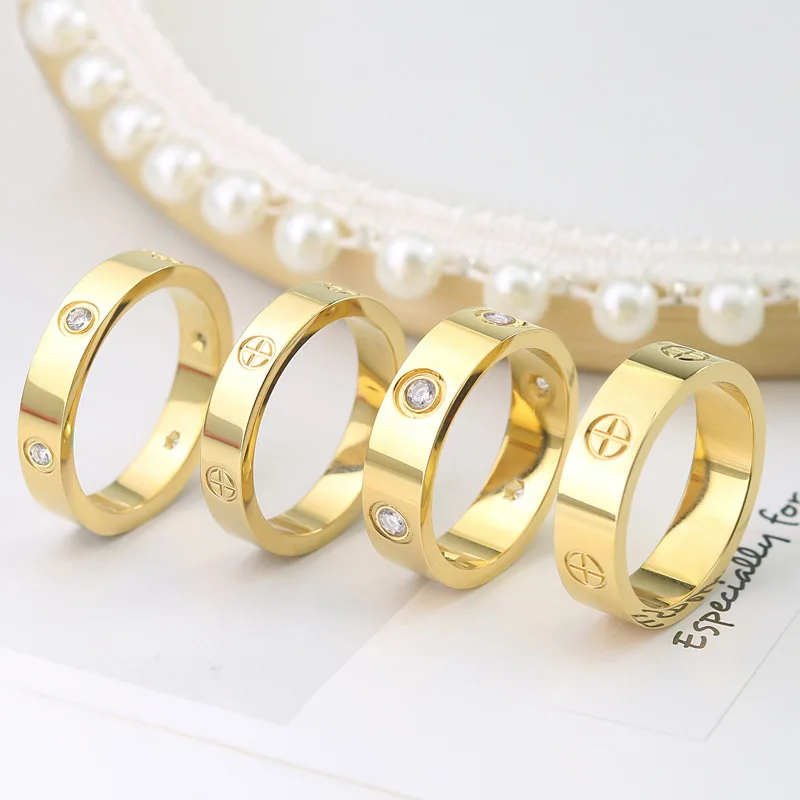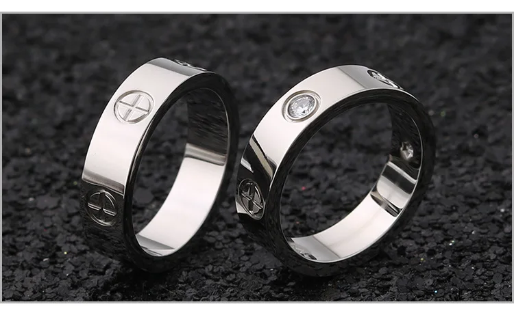 Модное кольцо с крестообразной головкой и винтом из циркония, простое кольцо из нержавеющей стали с камнем для женщин, девушек, мужчин, обручальное кольцо для пары