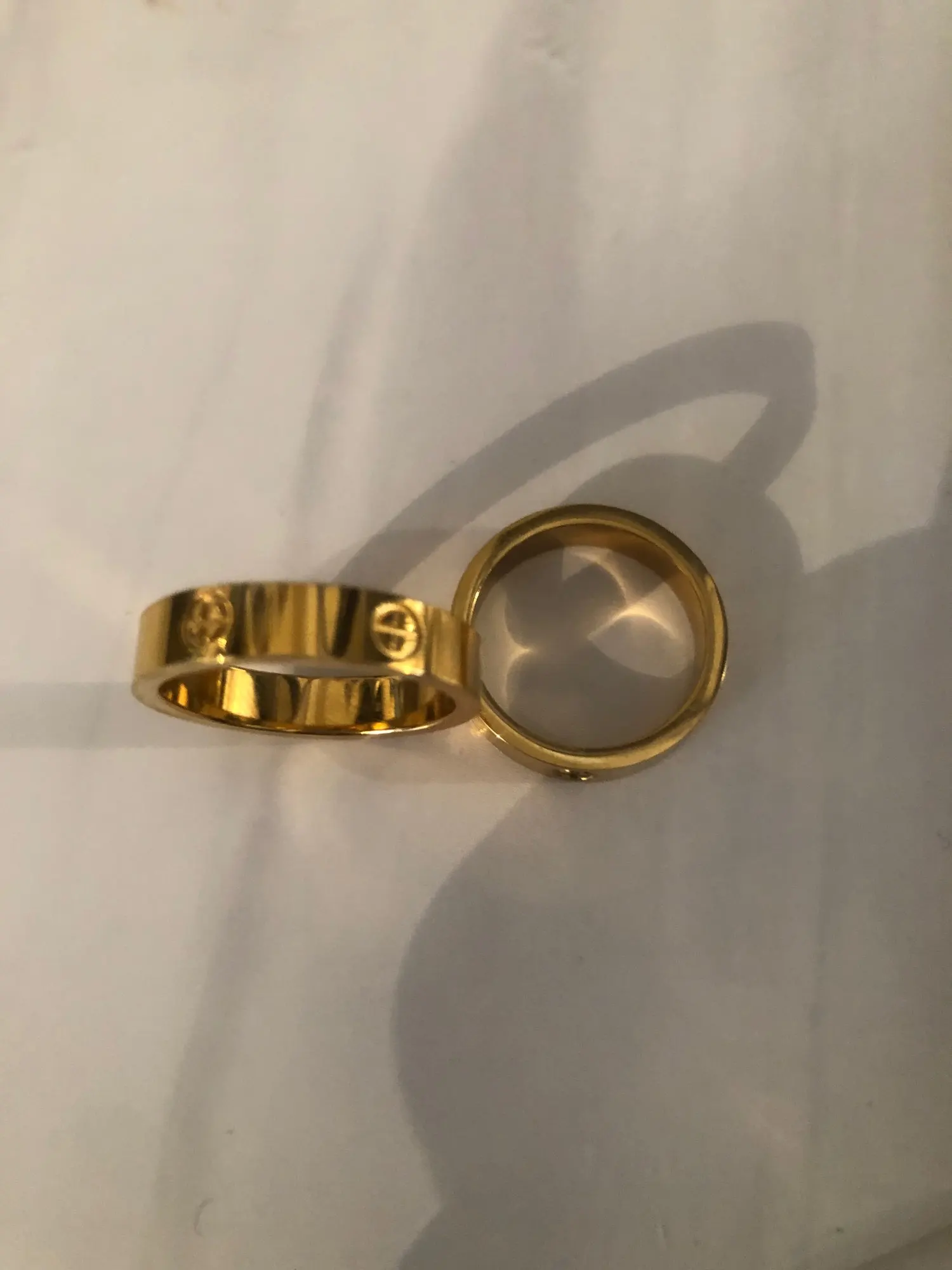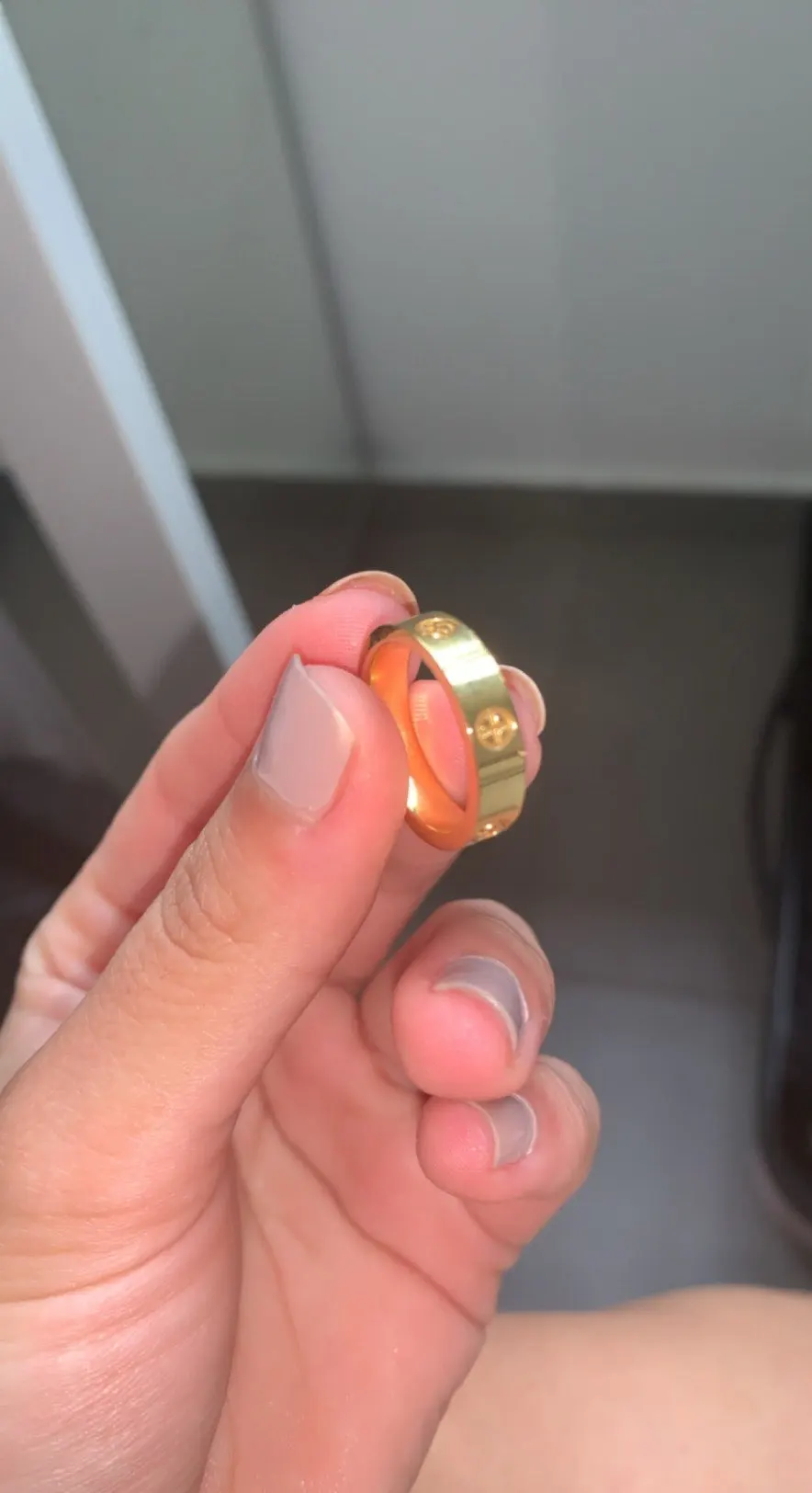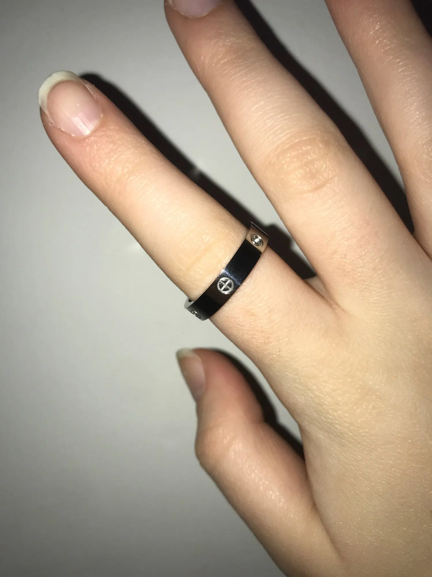 Пришел очень быстро, и я носил его уже несколько недель, и он все еще не ржавеет .... единственная жалоба, что он меньше, чем настоящее кольцо cartier