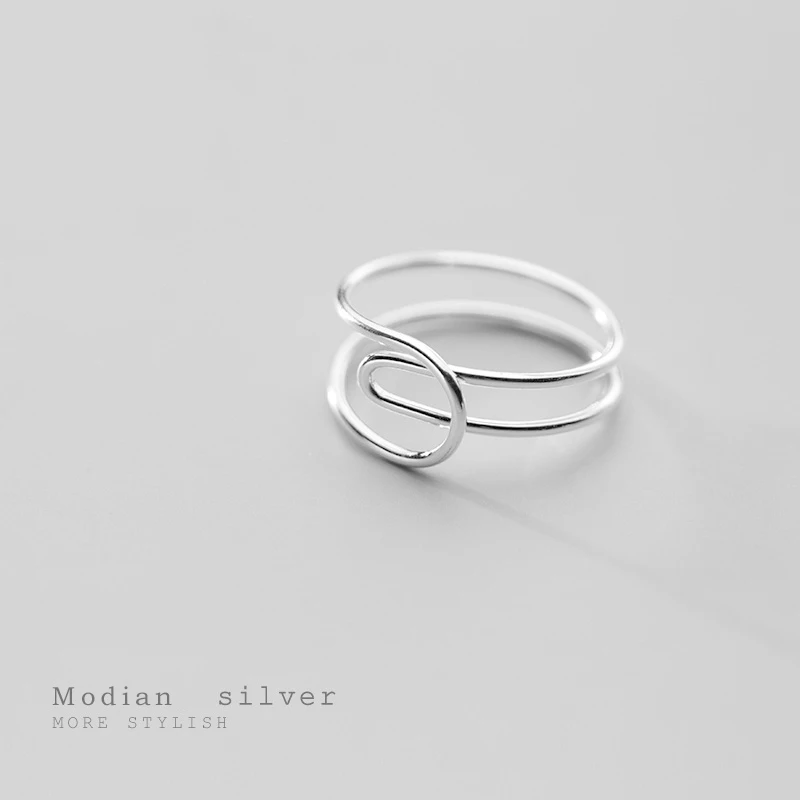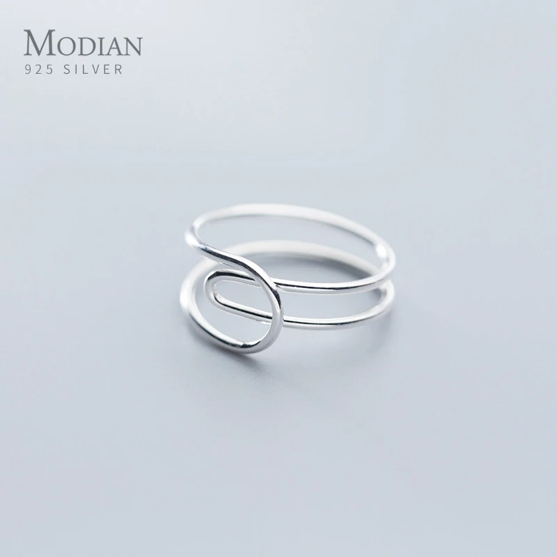 Простое кольцо Modian свободного размера для женщин, подарок, модное Двухслойное кольцо из стерлингового серебра 925 пробы с геометрической линией, Изящные Ювелирные изделия, новинка 2020