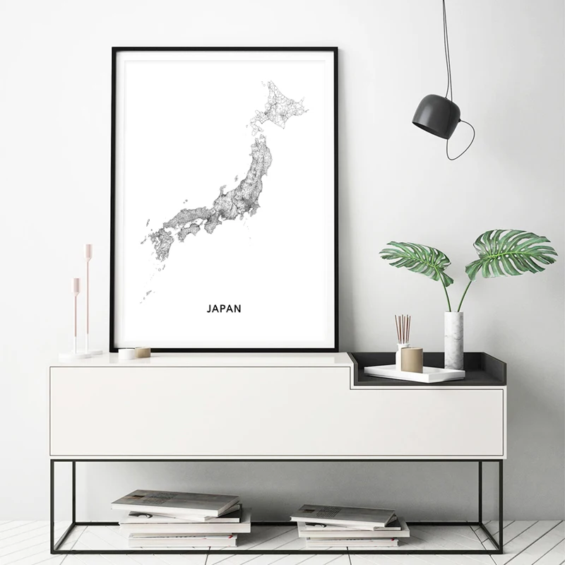 Японская карта, Картина на холсте, настенные картины, черный, белый цвет, Южная Корея, город, улица, Дорожная карта, художественные принты, современный декор для гостиной, офиса