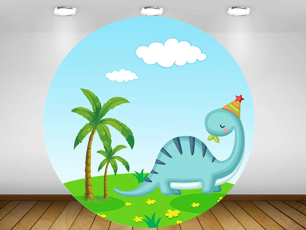 Круглый фон для детского праздника, Круглый фон, милый мультяшный динозавр, крышка для стола на день рождения, цилиндрические пластины, эластичная фотография