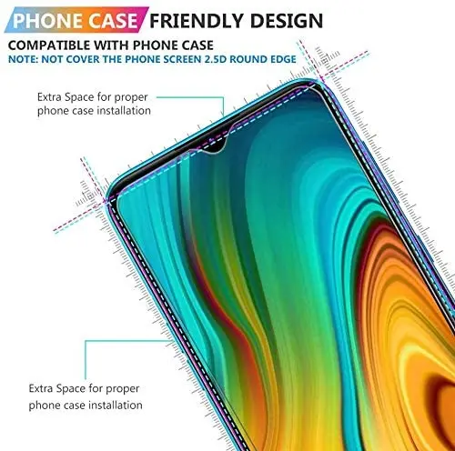 Разработано меньше, чем экран телефона по краям, закрывает только плоскую область дисплея, чтобы соответствовать всем чехлам.