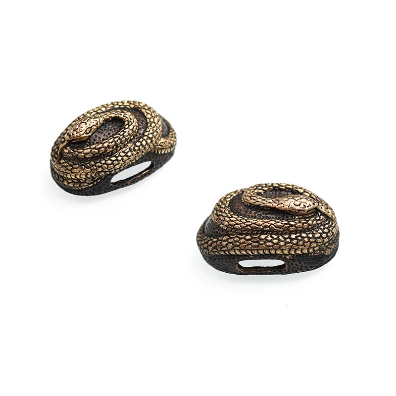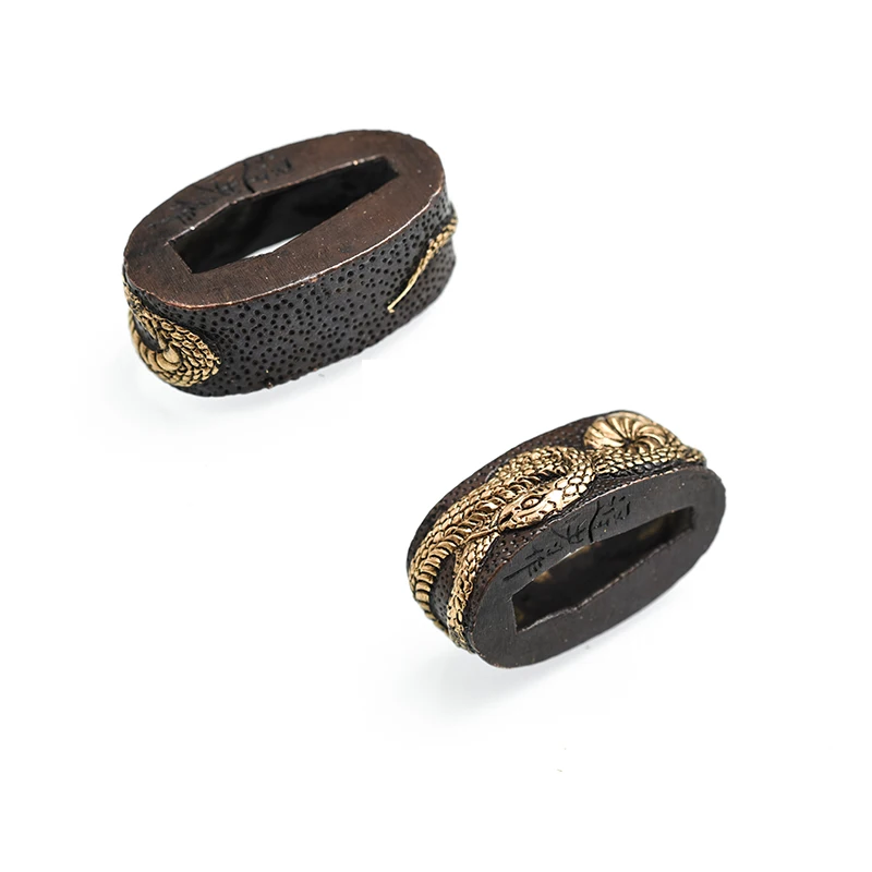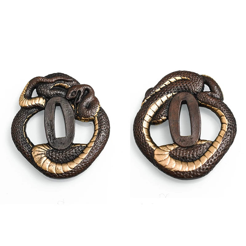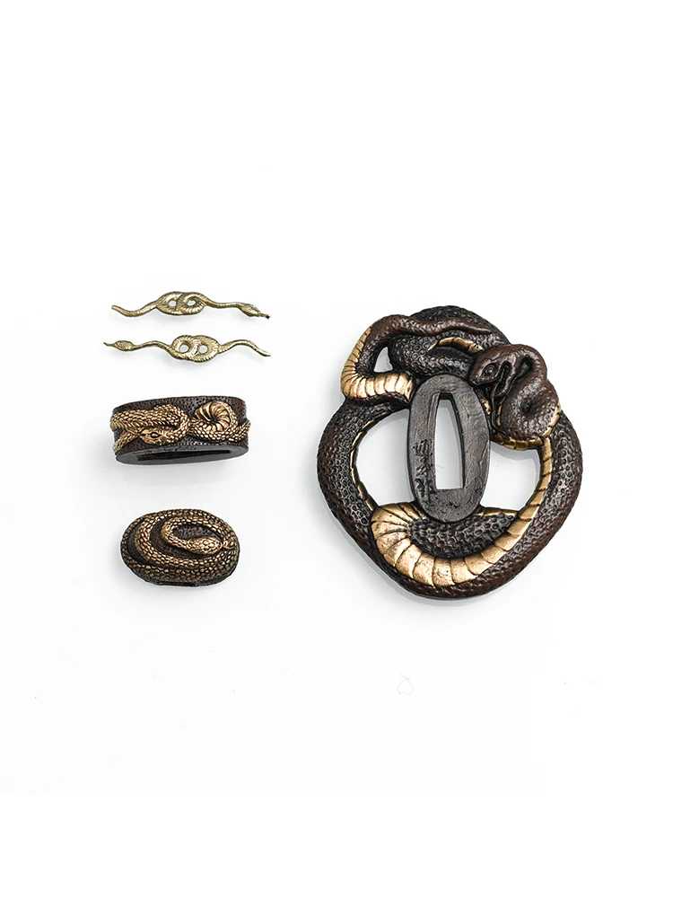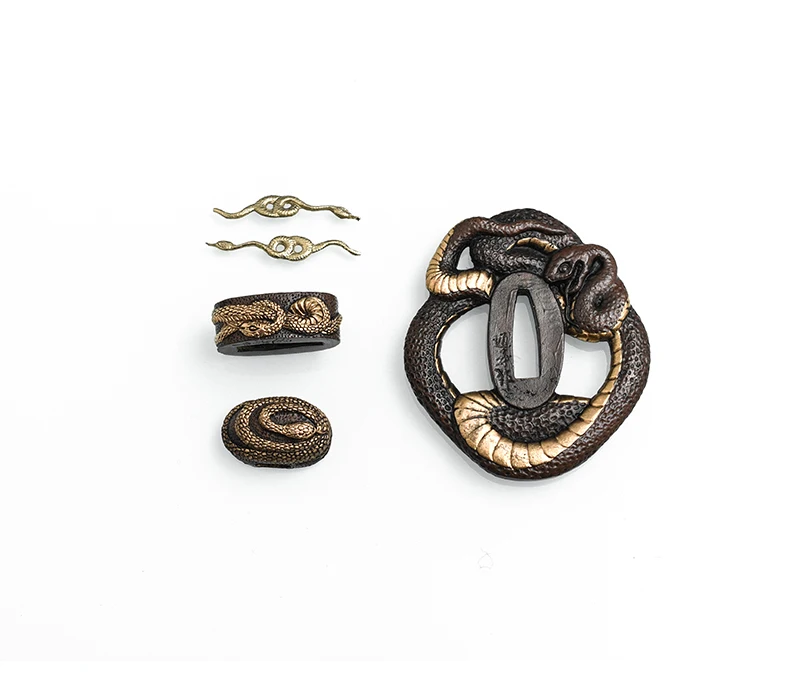Японский меч Nihonto, металлическая фурнитура Цуба для катаны, набор фучи Кашира менуки с латунным покрытием, золотая и Серебряная Защита для рук-змея Tsuba