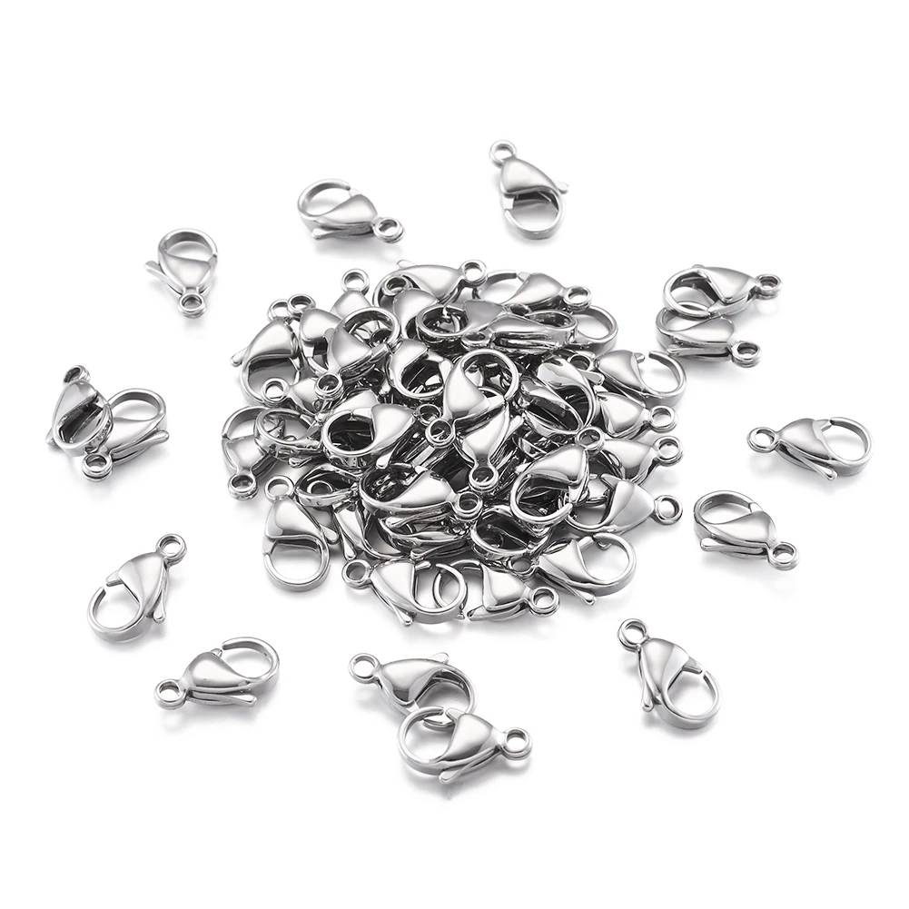 Застежки-карабины из нержавеющей стали 100 для браслетов и ожерелий, 91011121315 мм, золотистого цвета, 304 шт.
