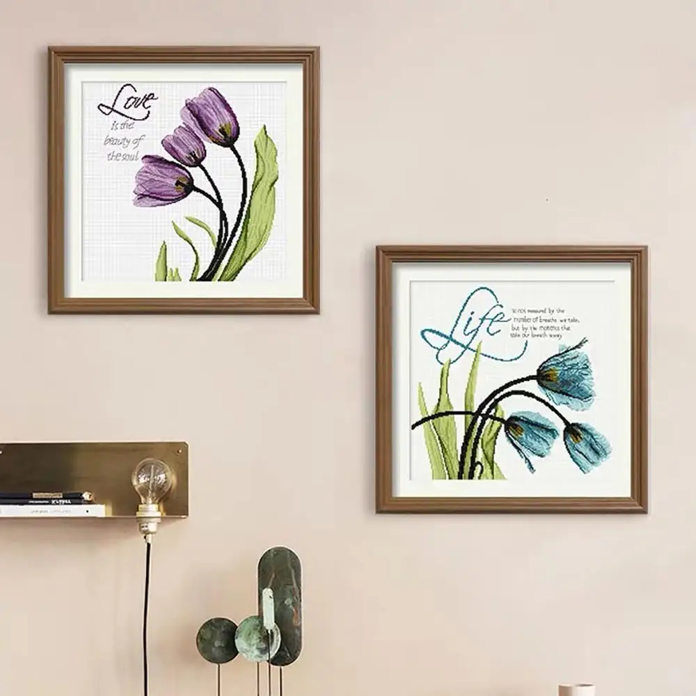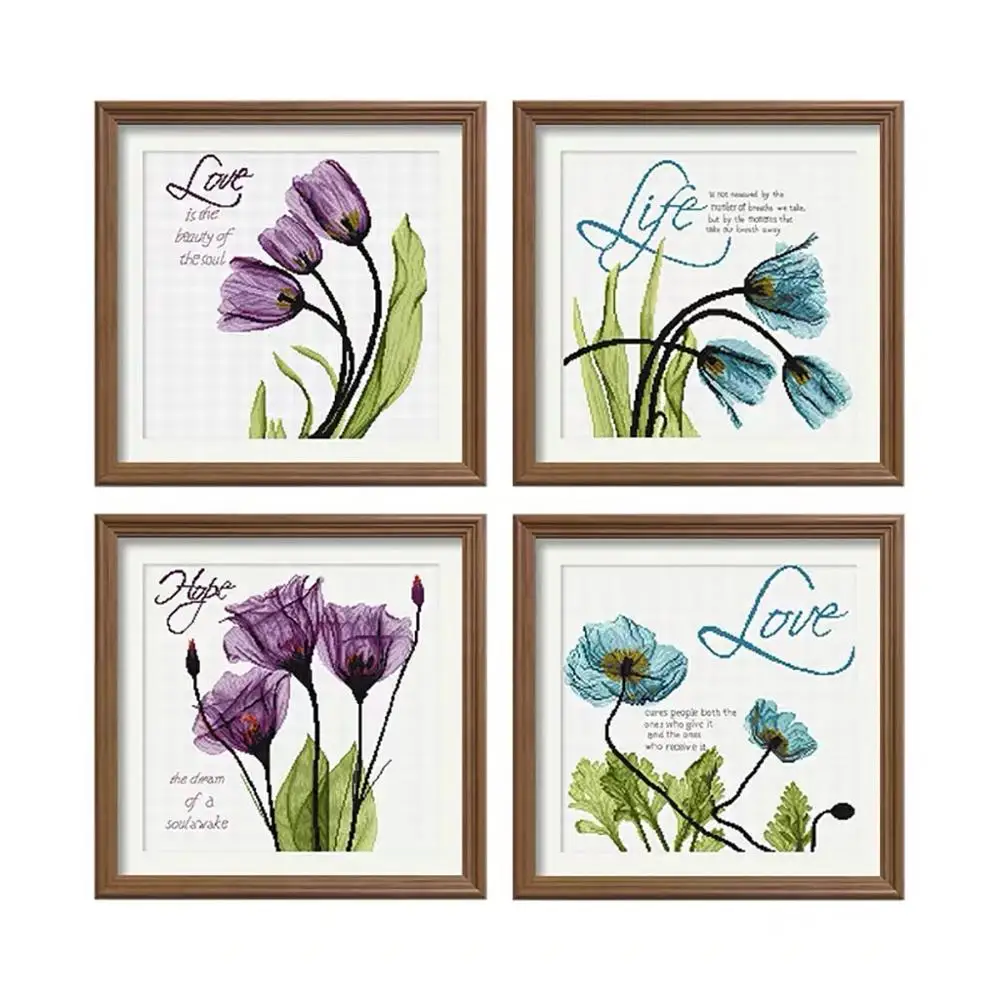X-Ray Art красивый фиолетовый синий тюльпаны любовь цитаты штампованные крестиком набор Вышивка Рукоделие Набор