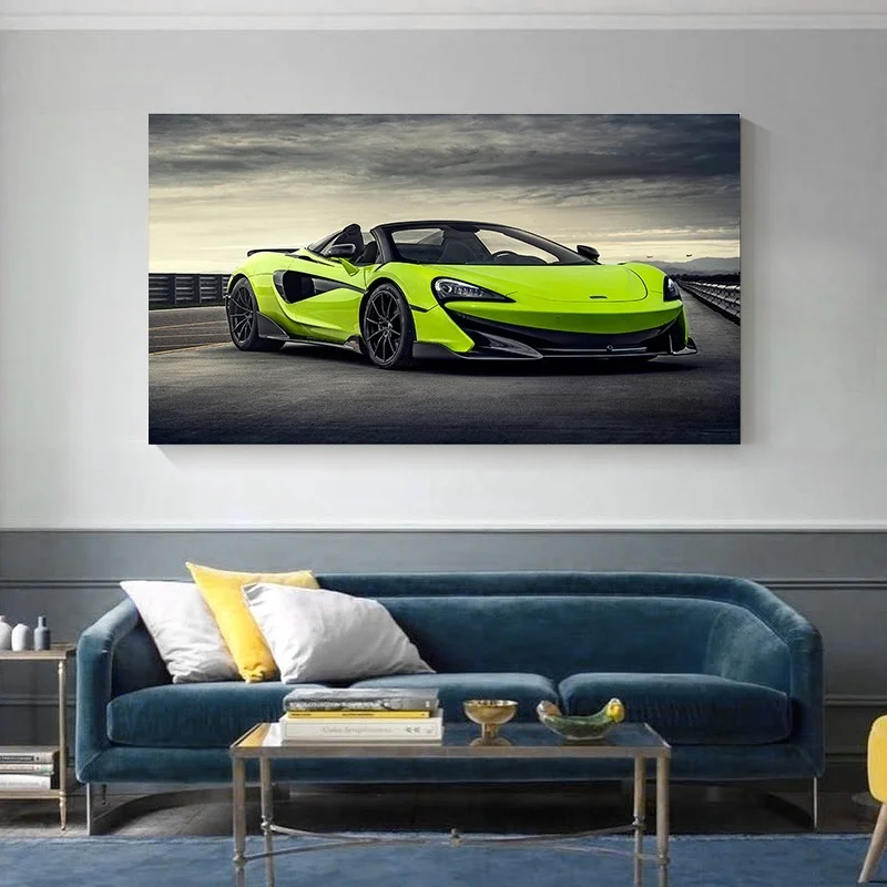 Классный зеленый суперавтомобильный постер, Пейзаж автомобиля, постер, картины на холсте, автомобильные картины, настенное искусство для гостиной, домашний декор (без рамки)