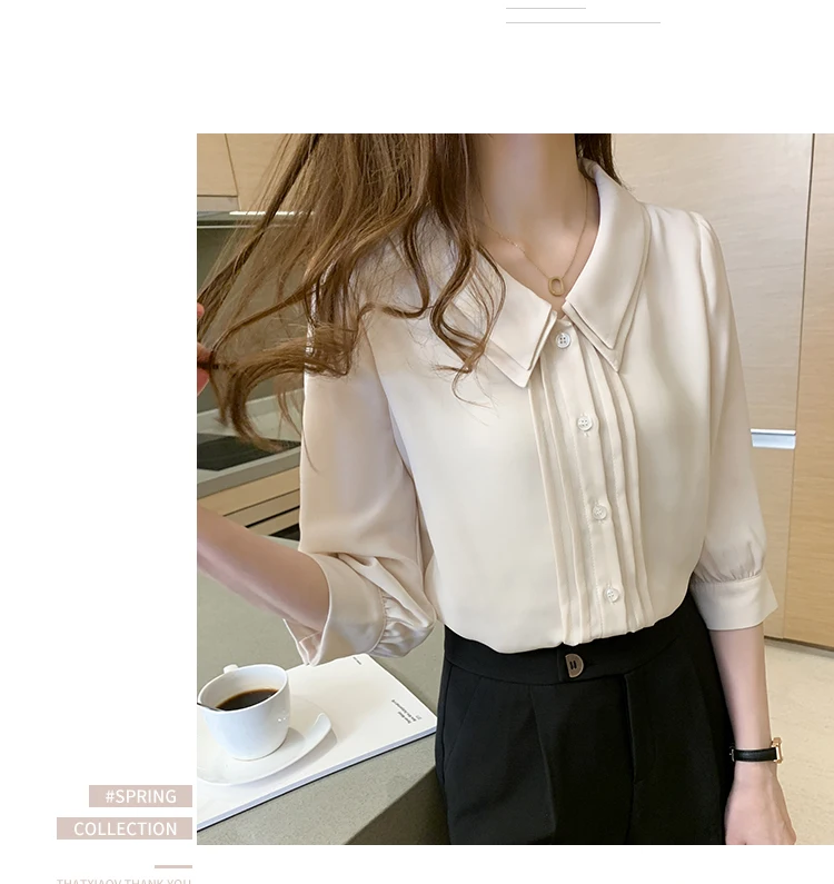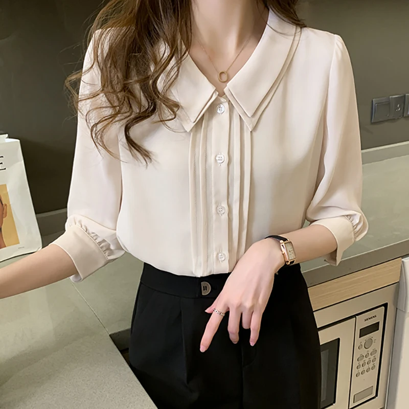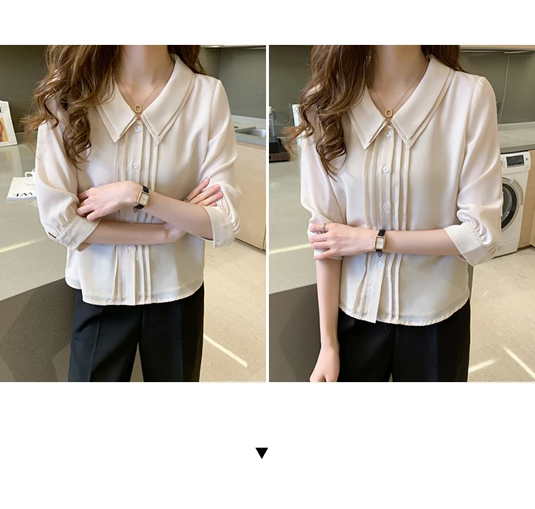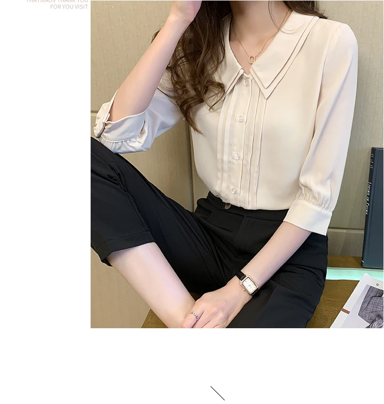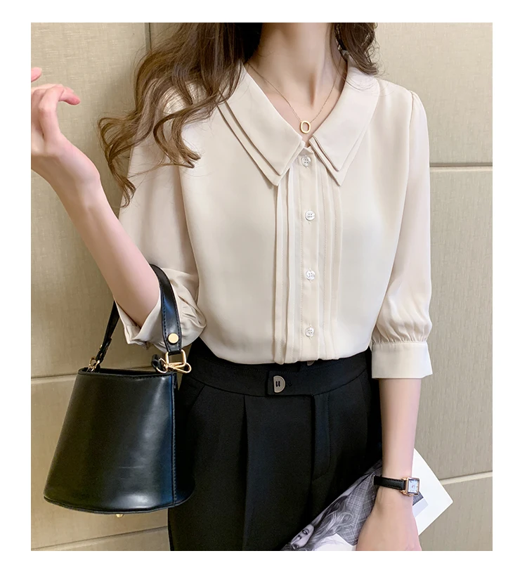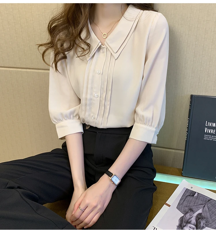 Пуловер с воротником Питер Пэн, рубашка, женские летние топы, повседневная женская одежда с коротким рукавом, шифоновая блузка на пуговицах, рубашка для женщин, 2022