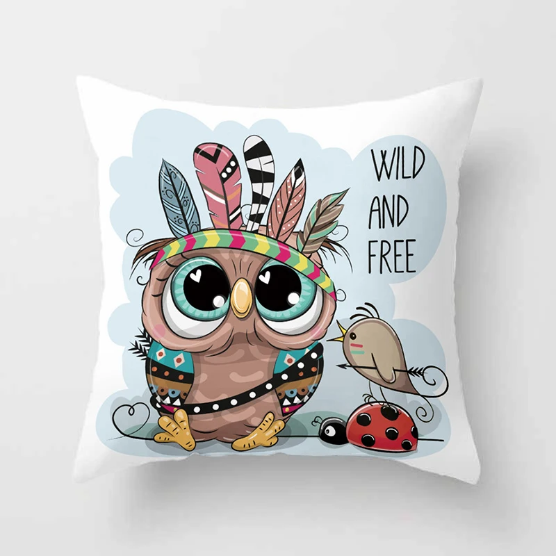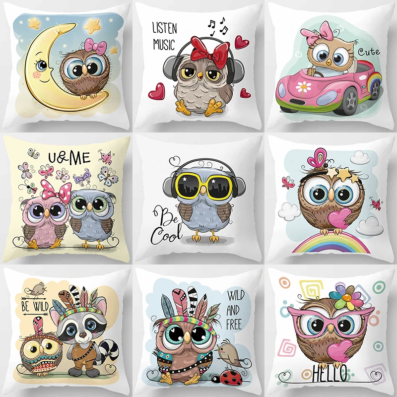 С рисунком в виде сов; Декоративная Подушка Наволочка Чехол для подушки из полиэстера на подушку размером 45*45 Диван украшения мультипликационным мотивом 40877