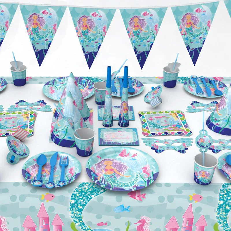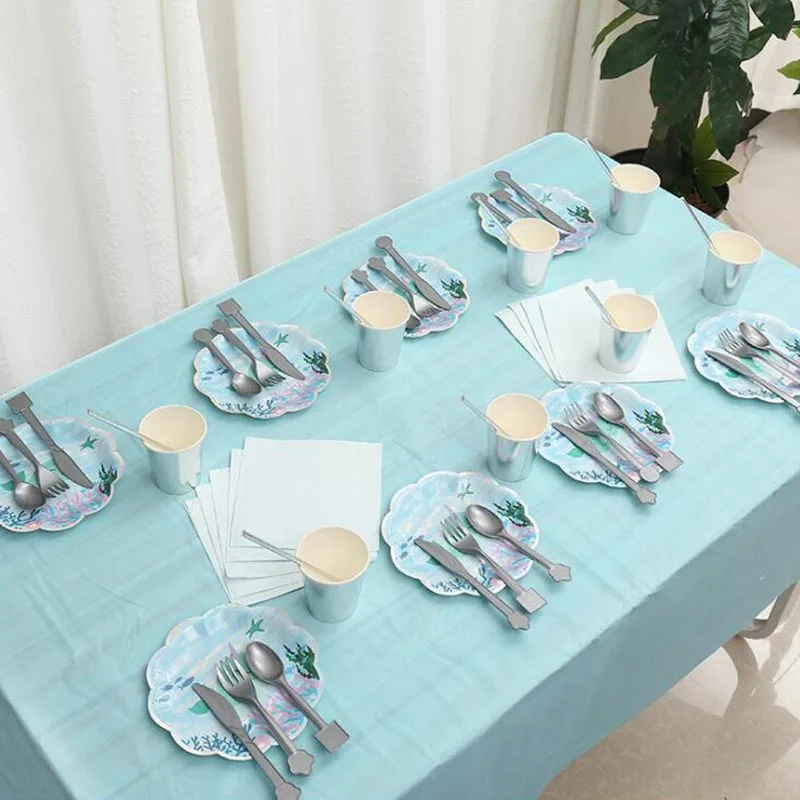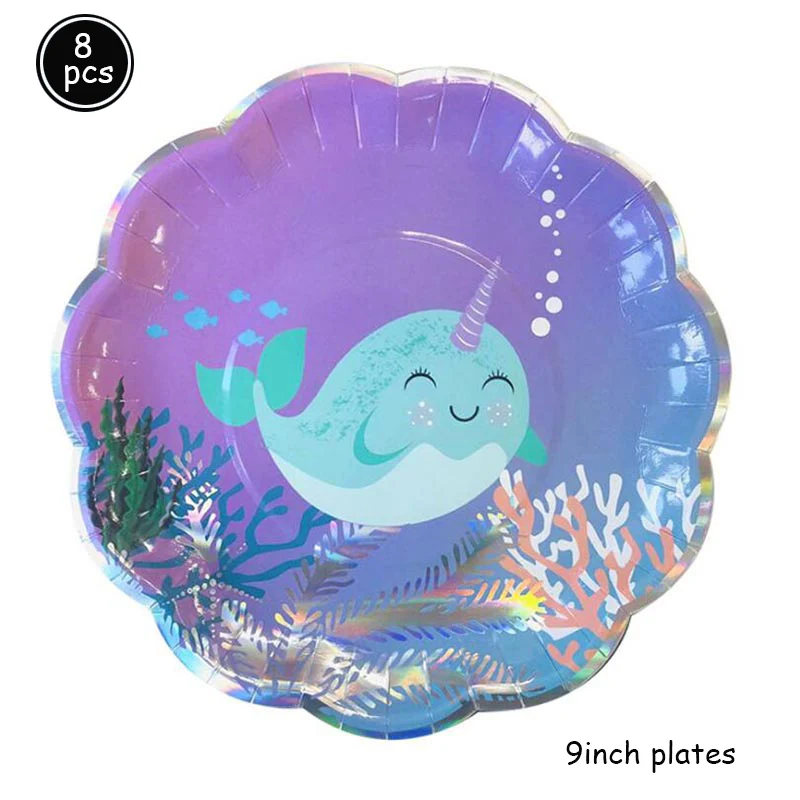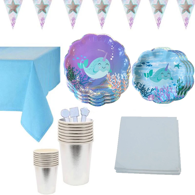 Морскую тематику одноразовая посуда нарвалы бумажные тарелки и стаканы салфетка детское платье русалки для День рождения столовые приборы Baby Shower поставки
