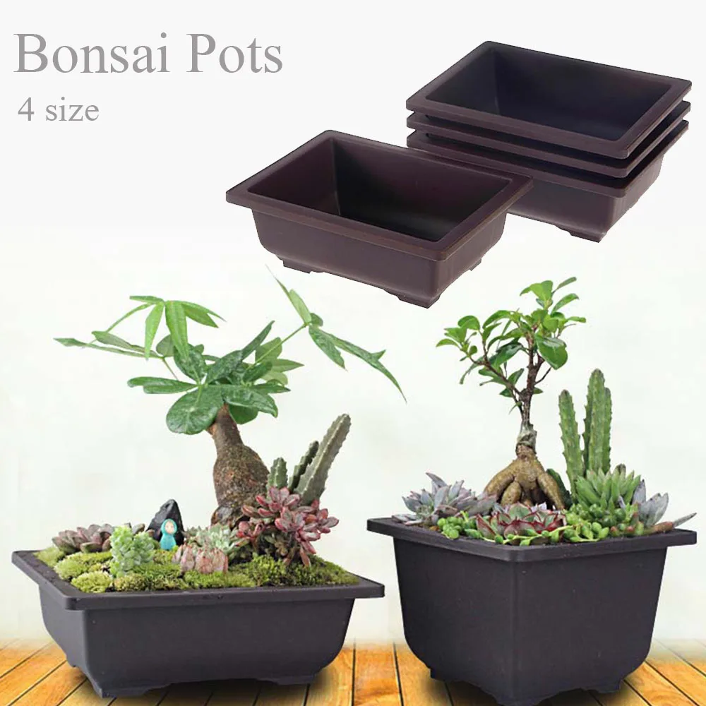 Горшки для цветов бонсай в скандинавском стиле с подносом, пластиковые, квадратныепрямоугольные, для выращивания растений, детские, балконные горшки, Садовые принадлежности