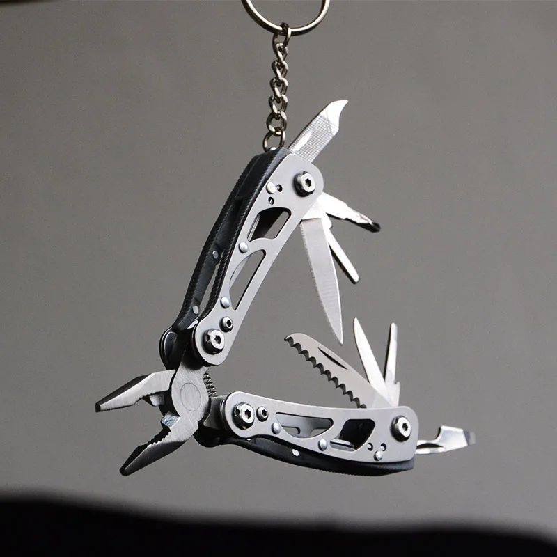 Многофункциональные инструменты-плоскогубцы, резак, полупила, острый скребок, маленькая отвертка с одним словом, открывалка для бутылок, большая отвертка, нож,