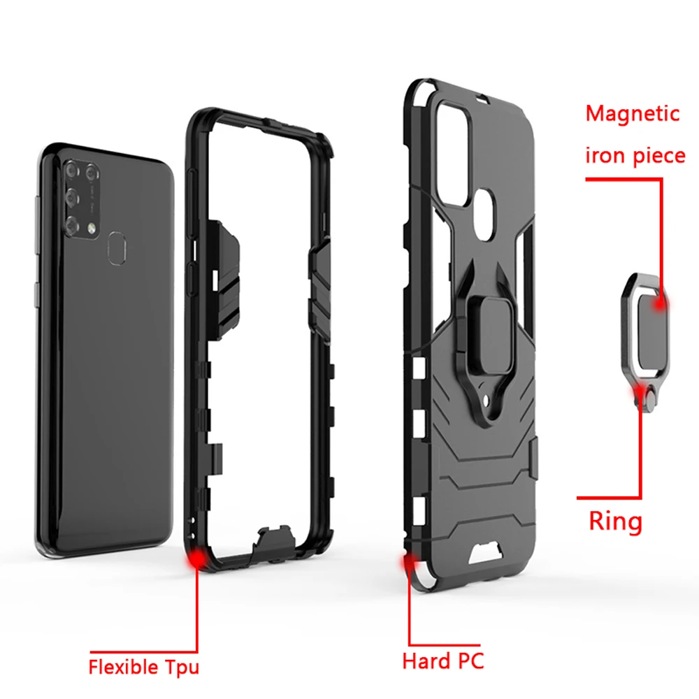 Чехол-подставка для Samsung Galaxy M31, M21s, M315F, 6,4 дюйма, Гибридный Жесткий Поликарбонат + Мягкий ТПУ, противоударный, с вращающимся кольцом