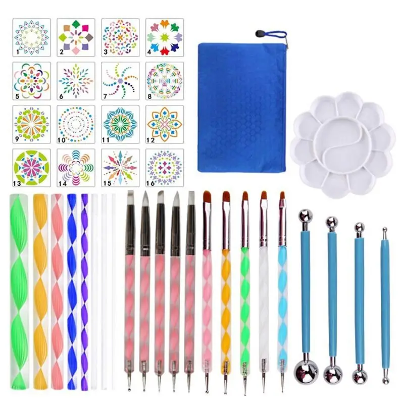 40 шт.компл. набор инструментов для раскрашивания мандалы для самостоятельной окраски камня, трафареты, кисть