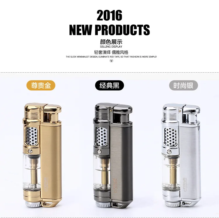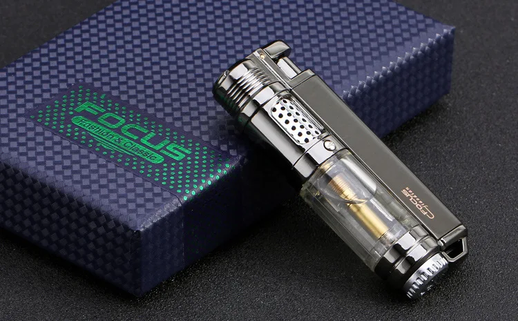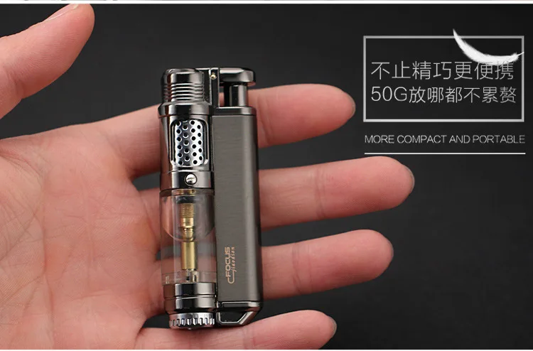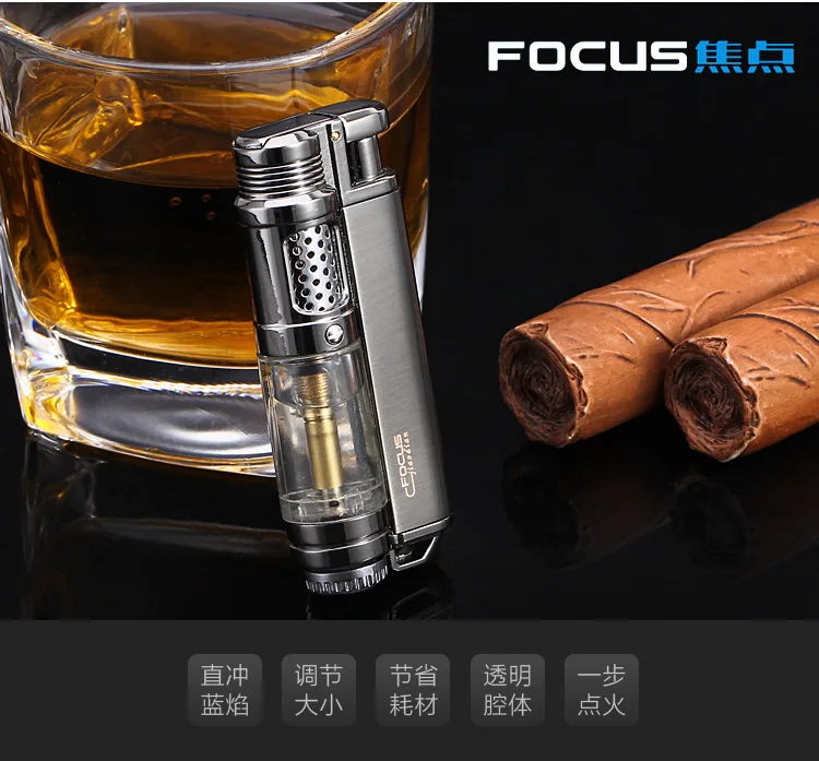Ветрозащитный Видимый газовый оконный фонарик, зажигалка для сигар, Бутановая металлическая турбозажигалка, портативный пистолет-распылитель, трубка 1300 C, гаджеты для мужчин