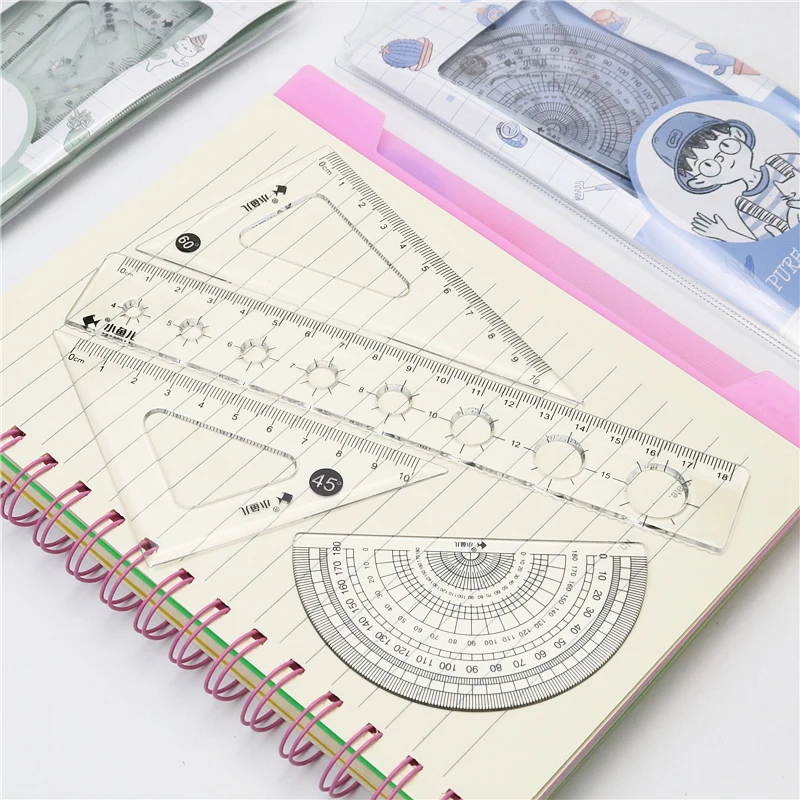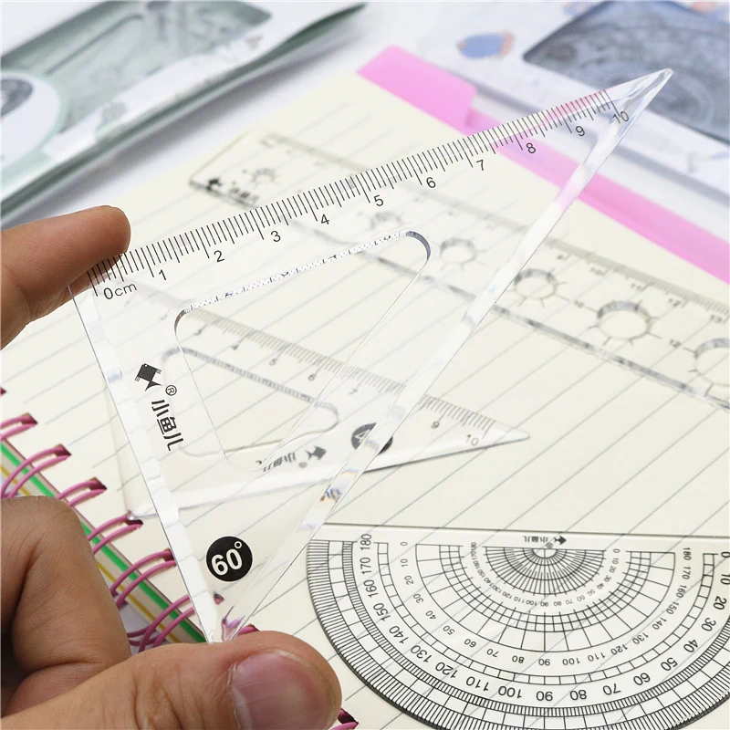 Набор пластиковых прозрачных линеек, 4 шт.компл., инструмент для измерения геометрических фигур, Канцтовары для обучения