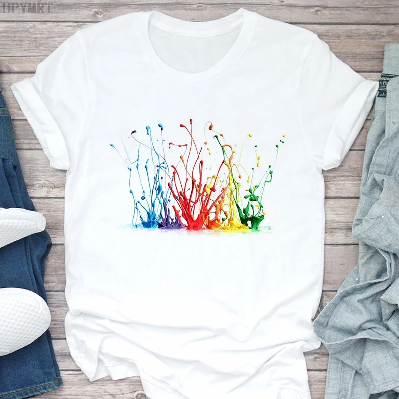 Мода каблуки новые акварельные высокие печататься Tshirt женщин 90s...