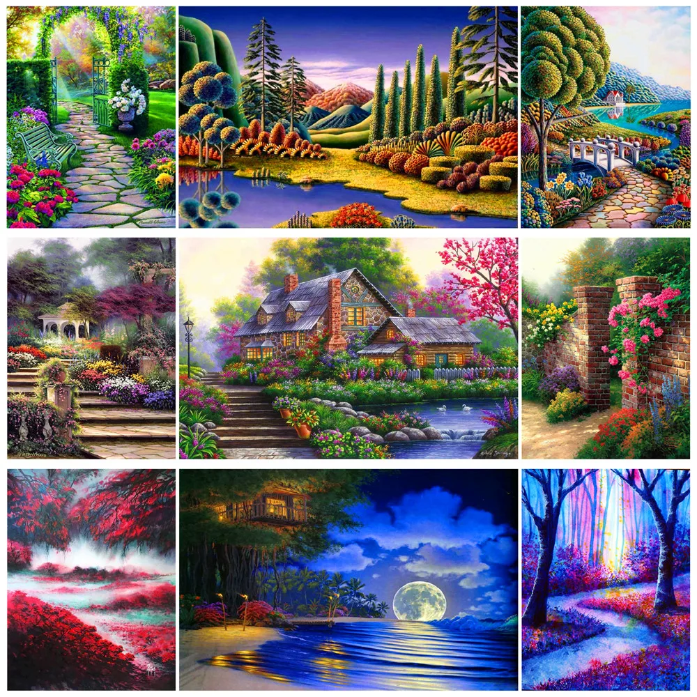 Полноформатная алмазная живопись, дом, животное, луна, дорога, парк 5D, алмазная вышивка сделай сам, мозаика, пейзаж, художественный набор, украшение для дома