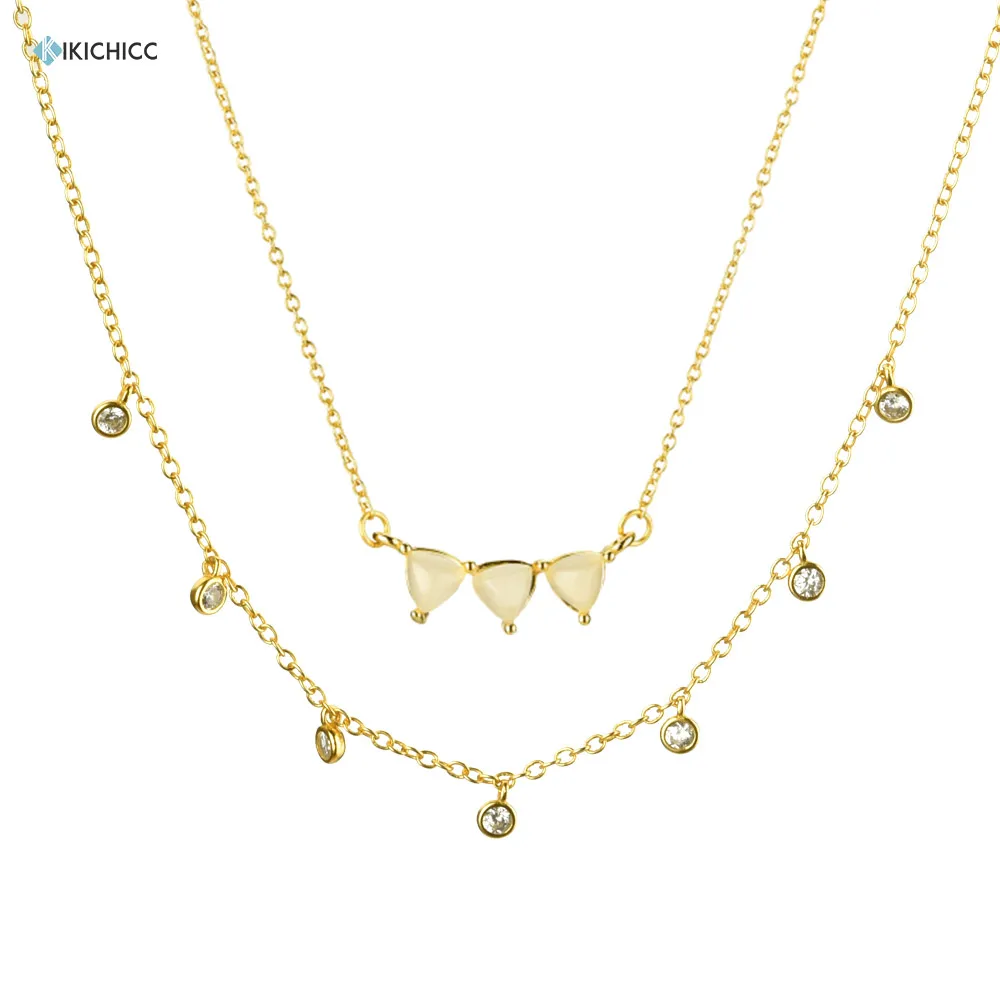 Ожерелье Kikichicc, из 100% серебра 925 пробы, с двойной цепочкой, с шкафчиком, кристаллический центр и вставленными камнями, cz 2020