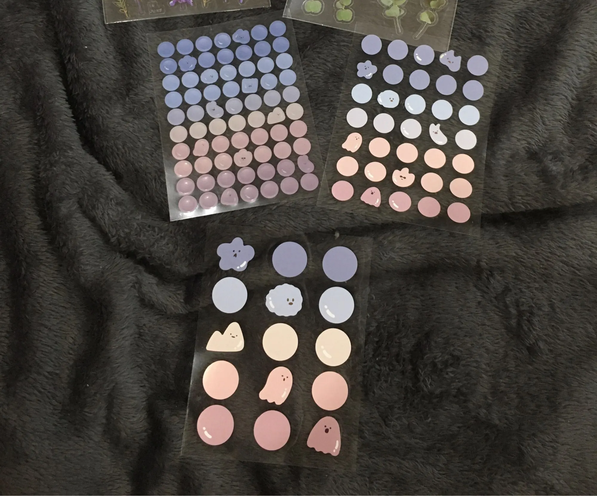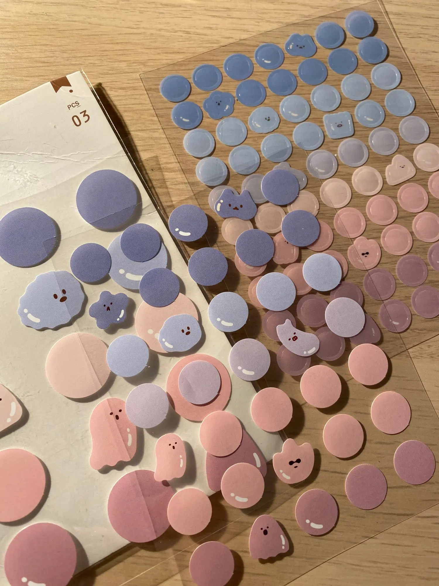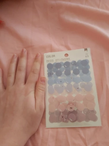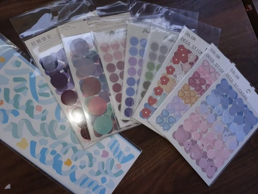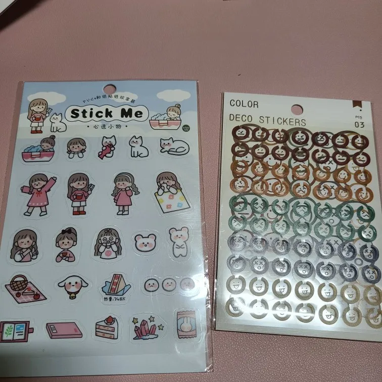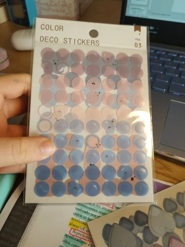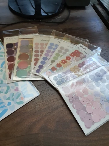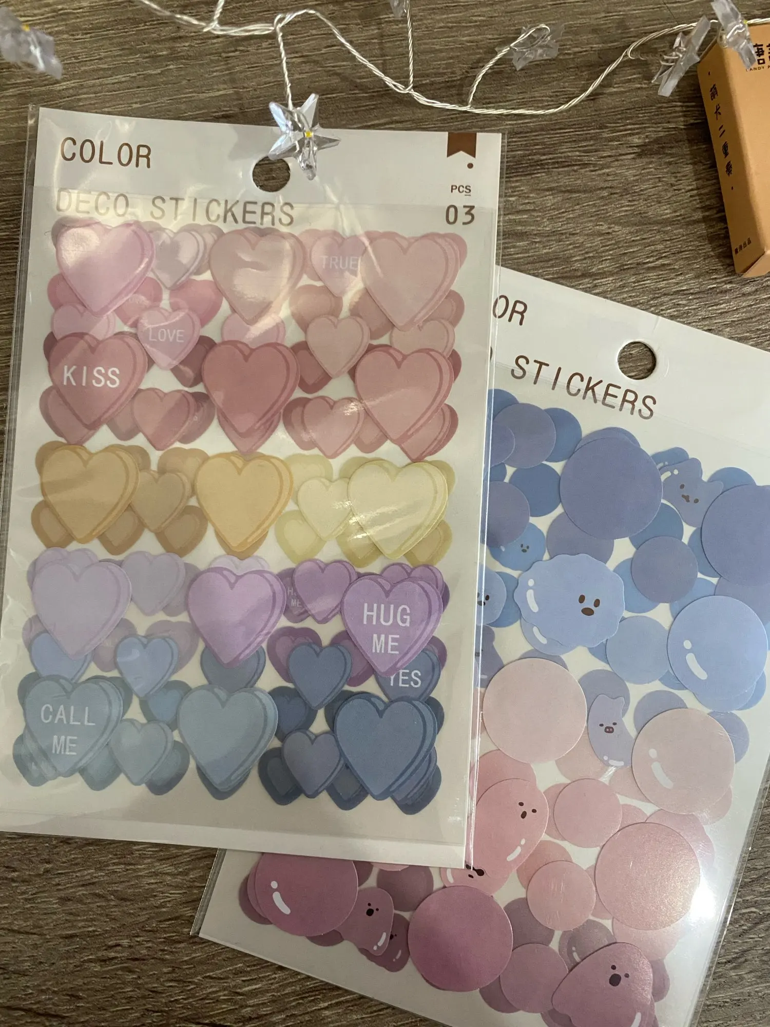 Наклейки красивые! Я чувствую себя прозрачным пластиком, что наклейки делают их намного проще, чтобы их отделить, а затем наклейки напечатаны на липкой бумаге. 10/10 порекомендую получить их! Вы не пожалеете об этом!