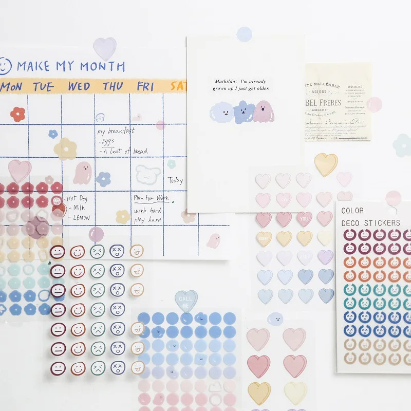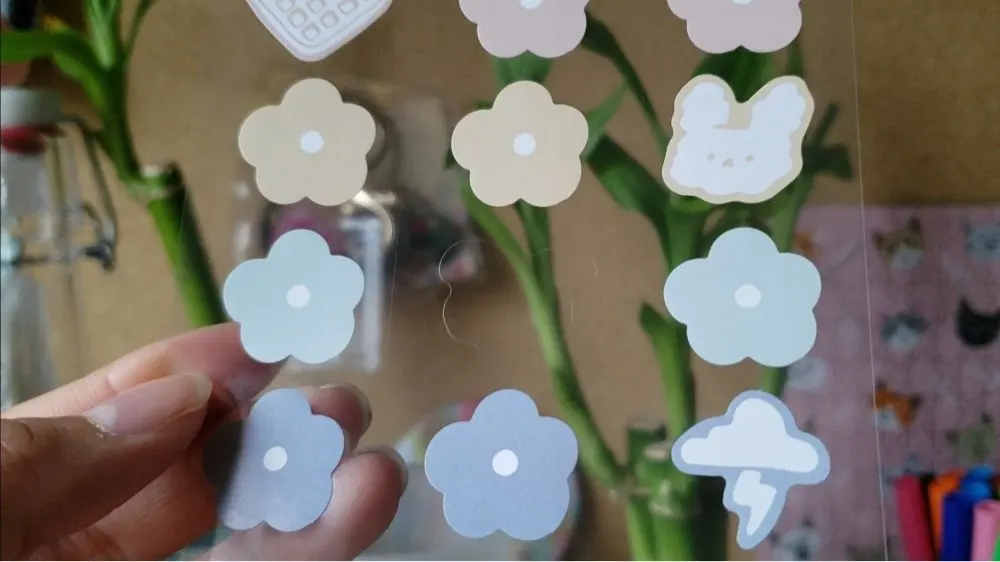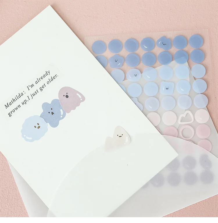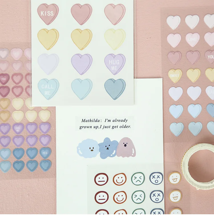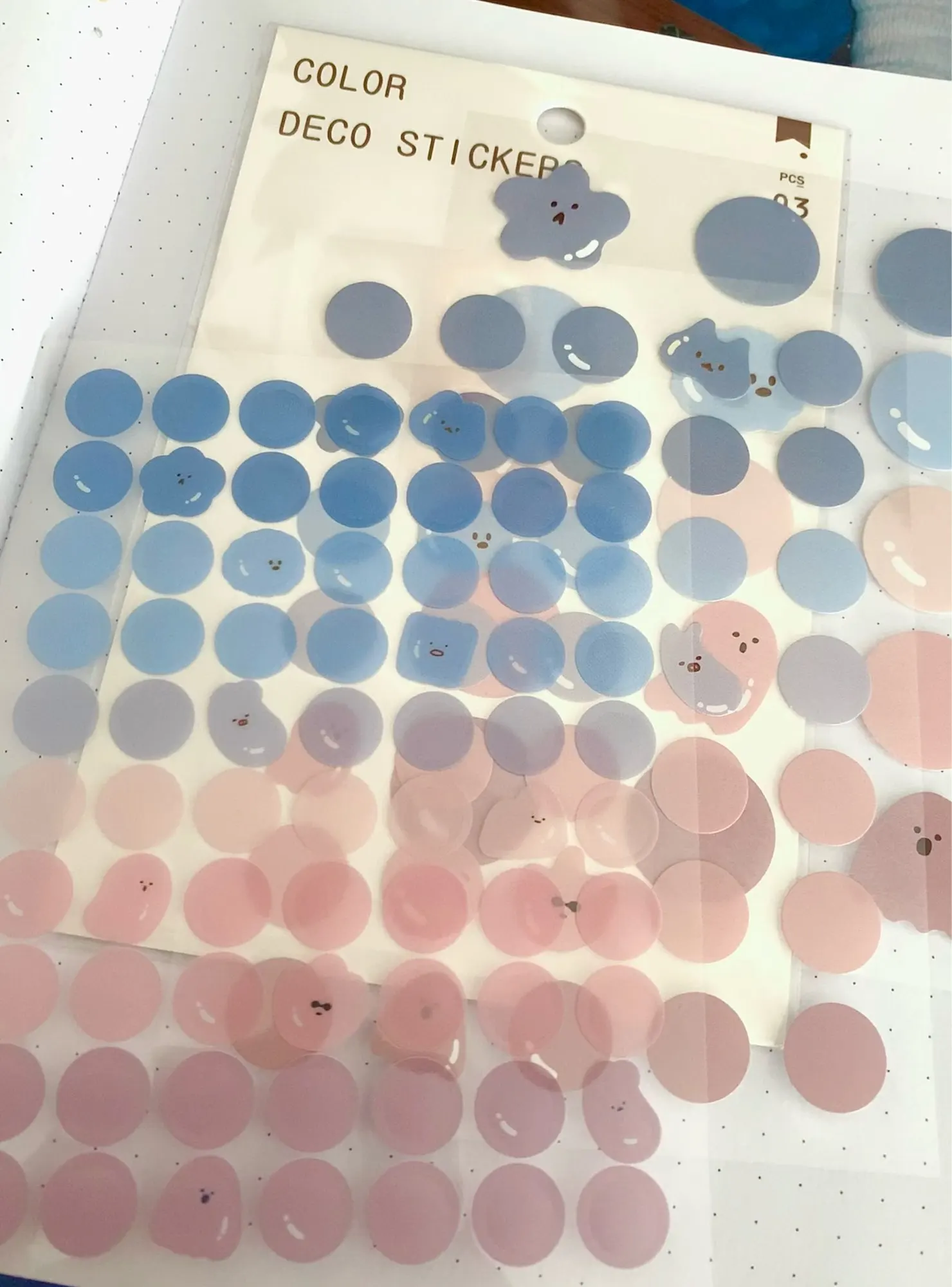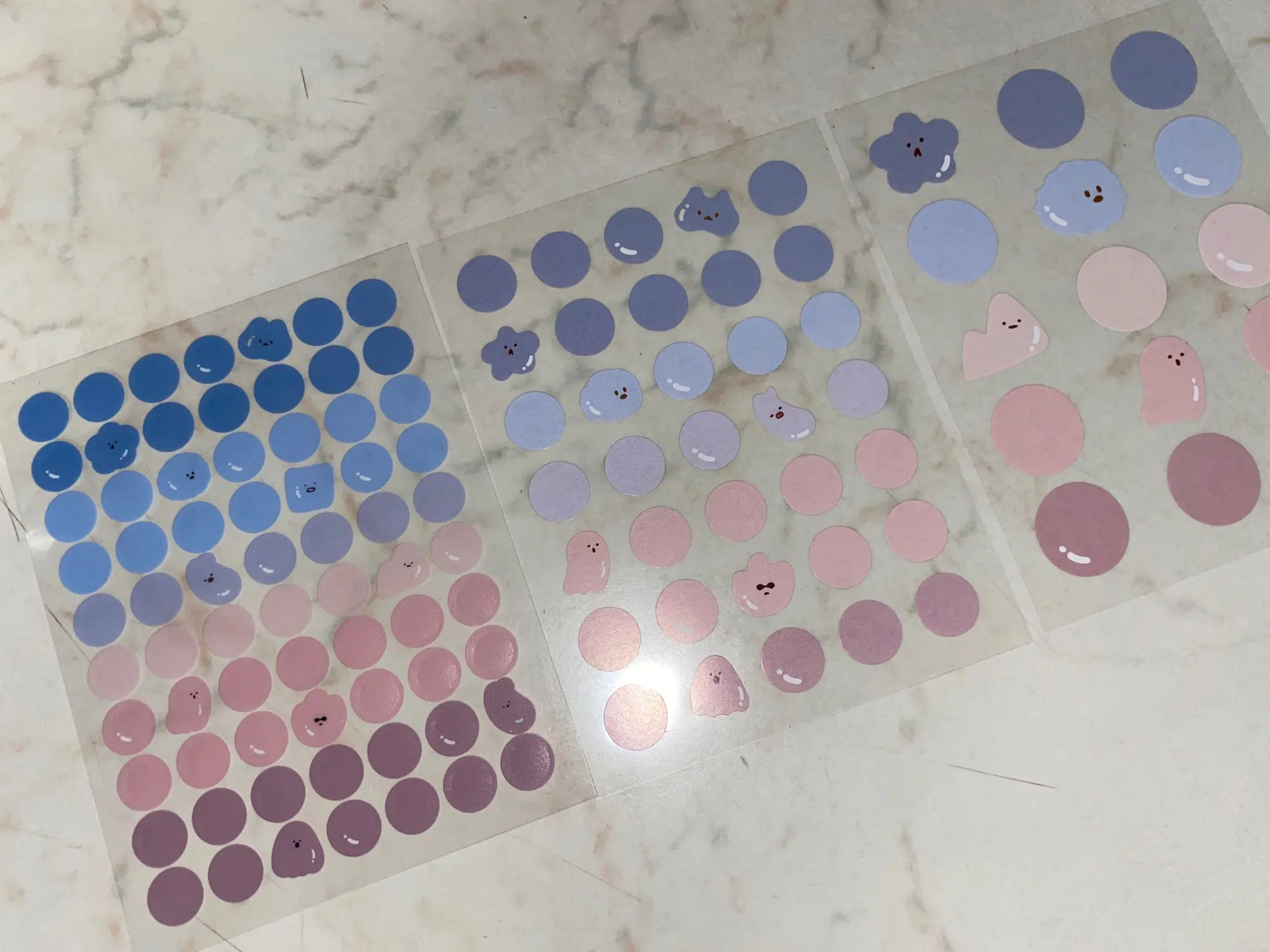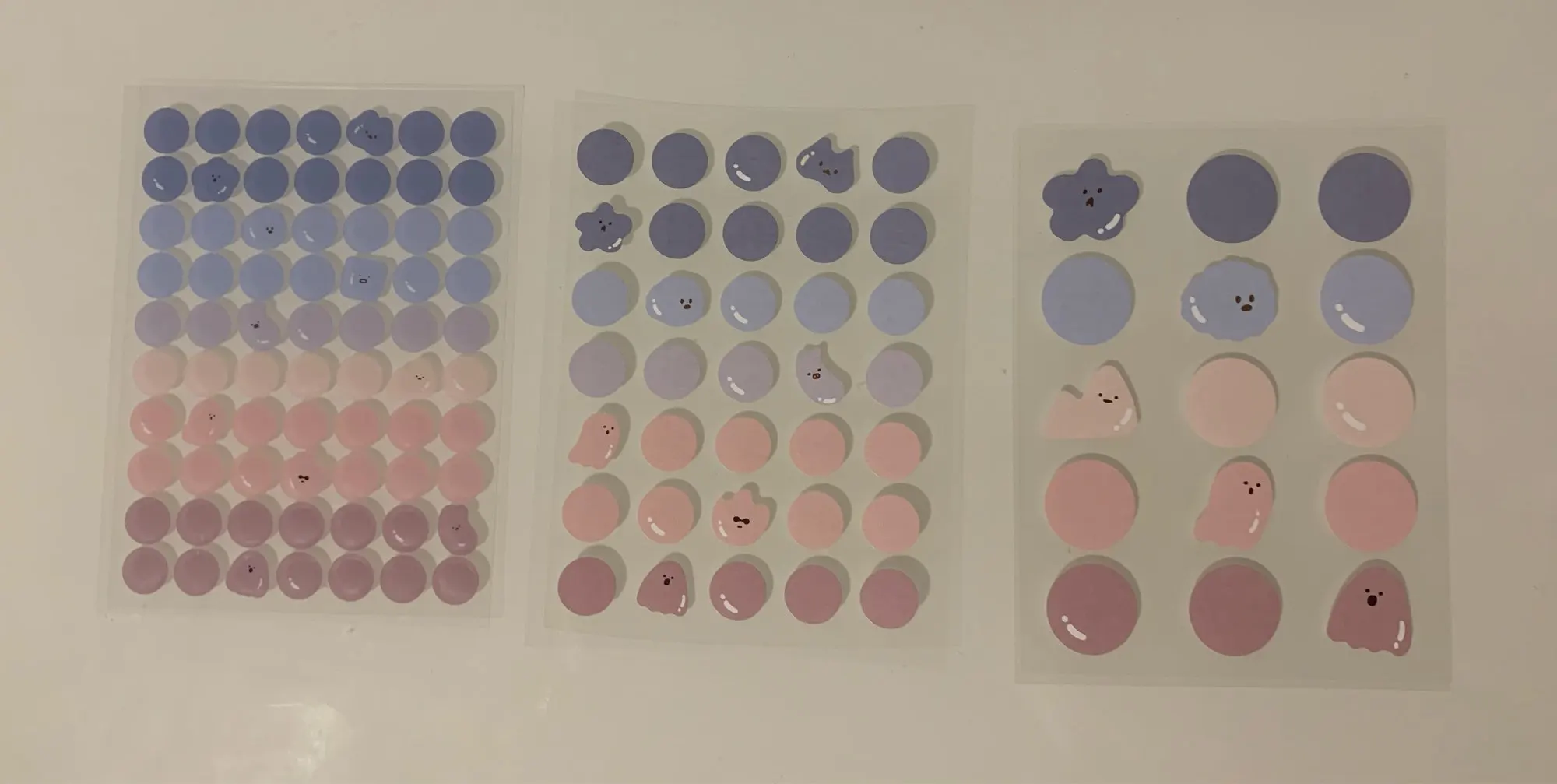 Наклейки красивые! Я чувствую себя прозрачным пластиком, что наклейки делают их намного проще, чтобы их отделить, а затем наклейки напечатаны на липкой бумаге. 10/10 порекомендую получить их! Вы не пожалеете об этом!