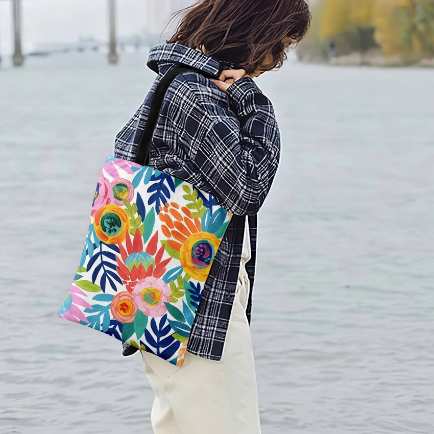 Сумка-тоут женская, с акварельными цветами и масляным принтом