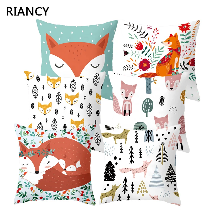 Декоративная подушка с изображением лисы Подушка Наволочка Чехол для подушки из полиэстера, декоративная наволочка для дивана 45*45, 40879