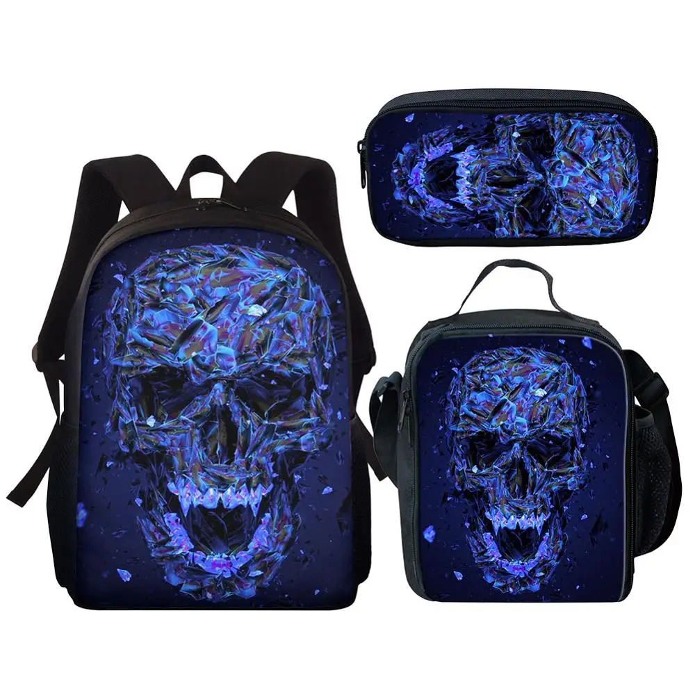 Детская школьная сумка, 3 шт.компл., с 3D-принтом черепа