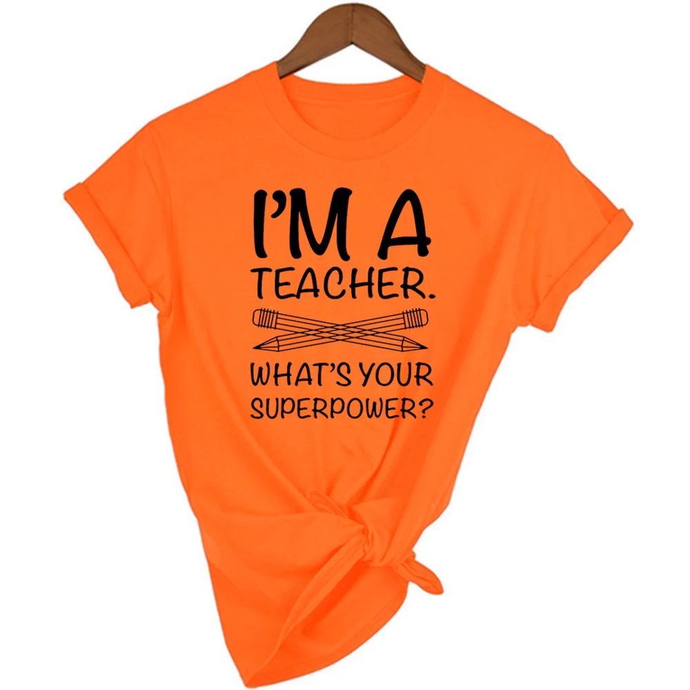 Женская футболка с надписью I'm Teacher What's Your Superpower, Повседневная футболка с короткими рукавами и круглым вырезом, подарочные футболки