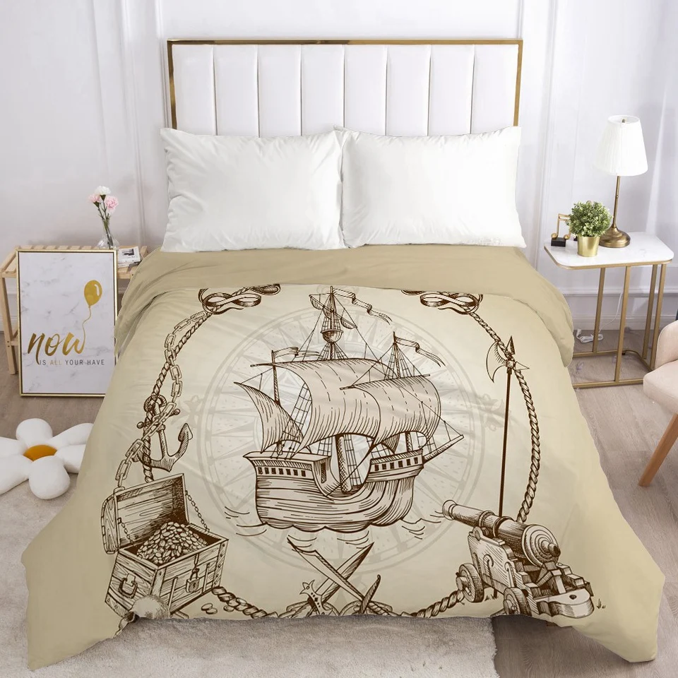 Пододеяльник с 3d-рисунком пиратских кораблей и сокровищ, размер 20...