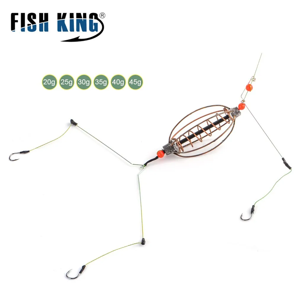 FISH KING металлическая клетка для прикорма, 20-45 г, рыболовная группа, грузила, рыболовные снасти для ловли карпа с крючками для лески