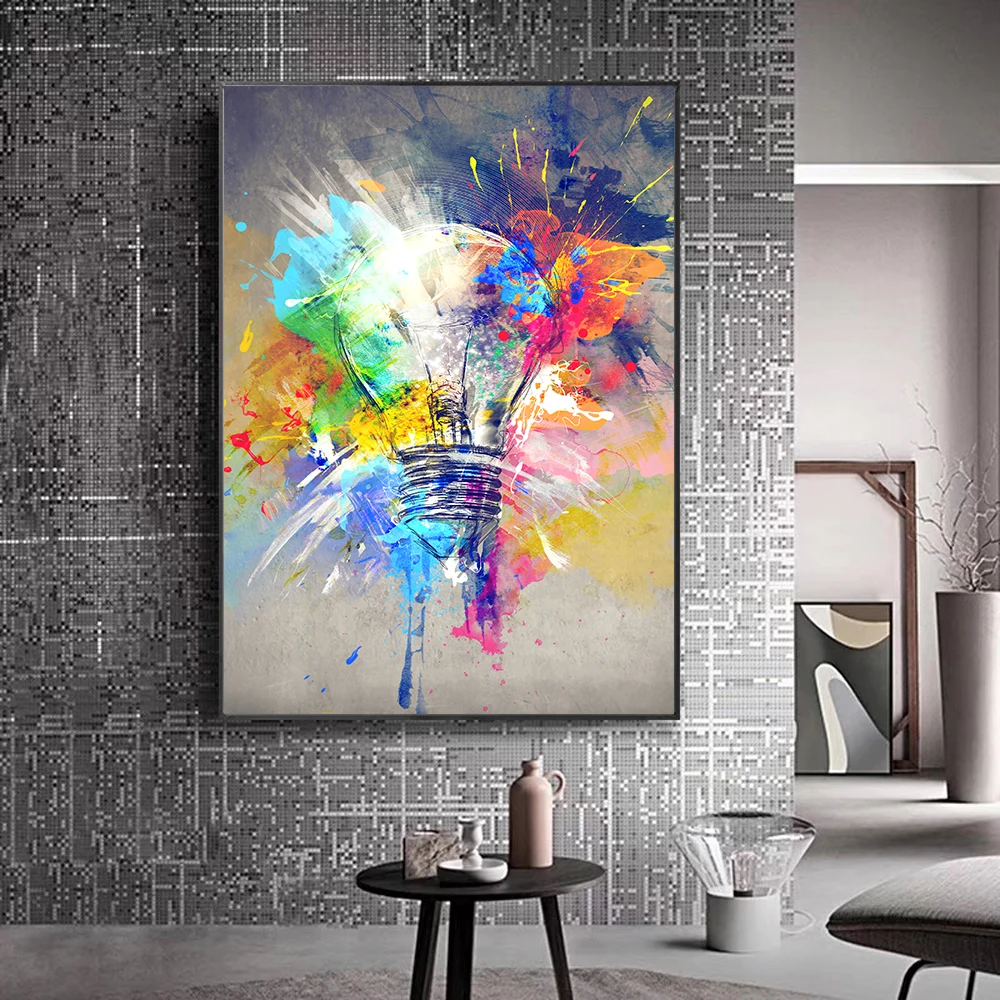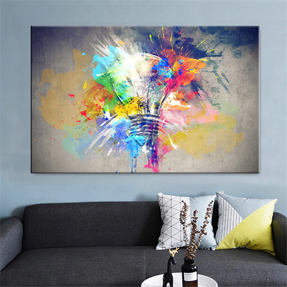 Лампочка граффити, настенное искусство, холст, постеры, принты, абстрактные уличные настенные картины для гостиной, ресторана, украшения