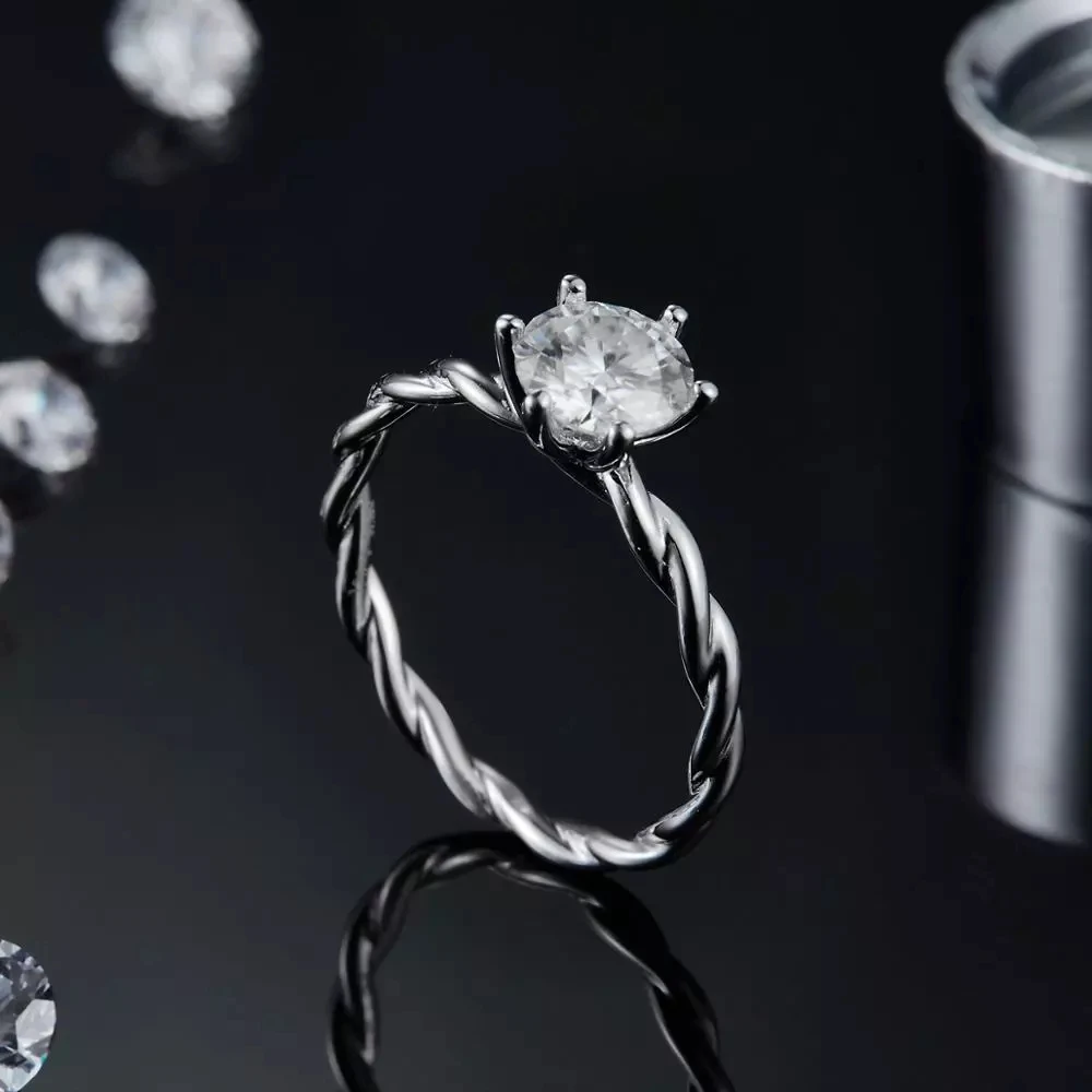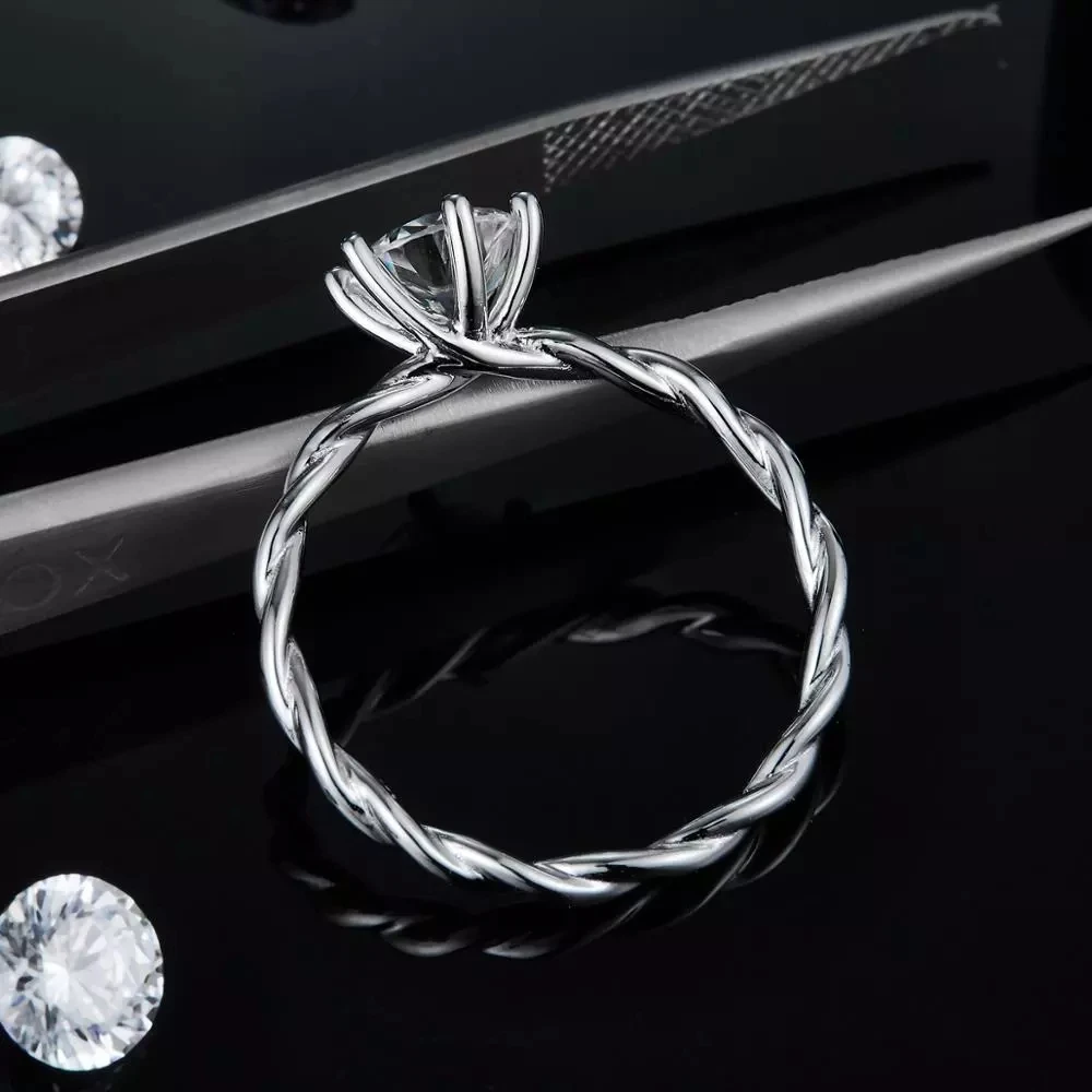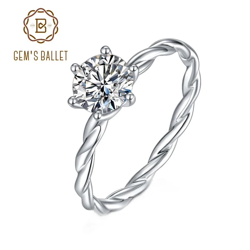 Женское Обручальное Кольцо GEM'S BALLET, обручальное кольцо из стерлингового серебра 925 пробы с бриллиантами, 1Ct, круглое кольцо Moissanite, 6 Зубцов, Twist
