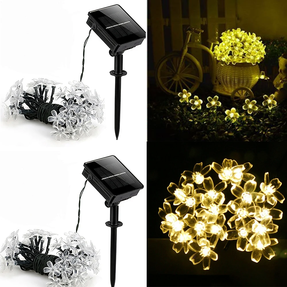 Энергия от солнечного света, этот светодиодный цветок Фея огни включается автоматически, когда темно и выключается в течение дня.