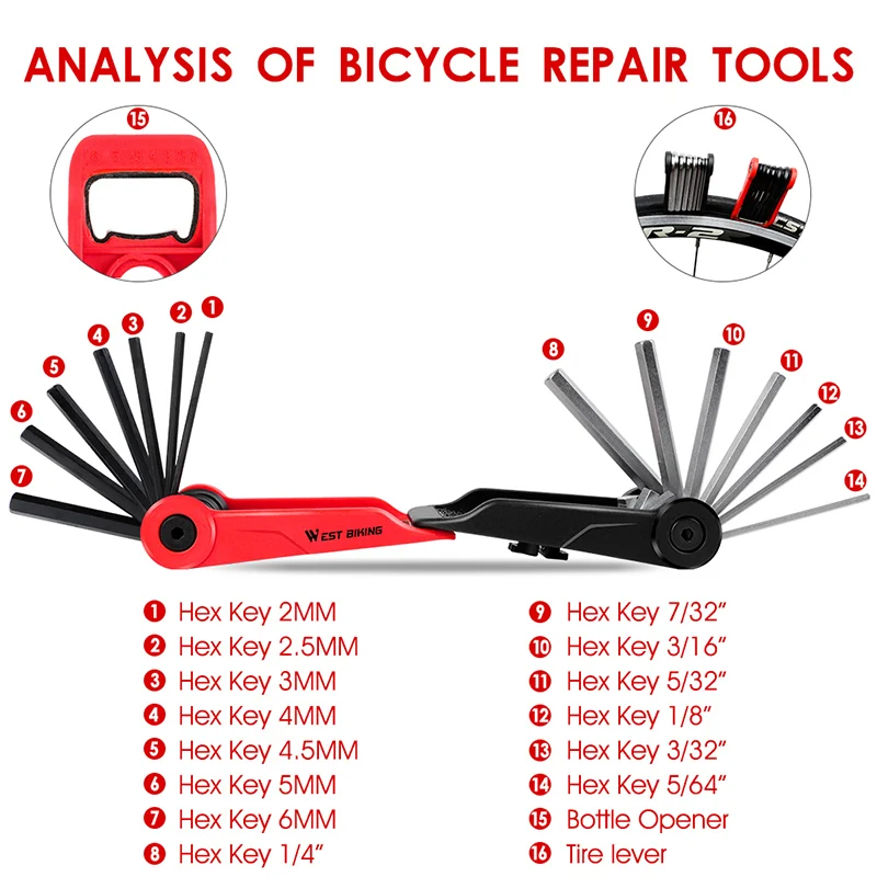 Набор инструментов WEST BIKING для ремонта велосипеда, шестигранный...