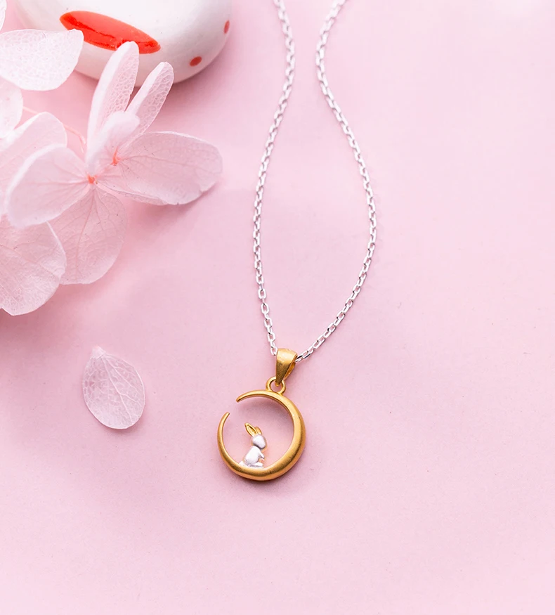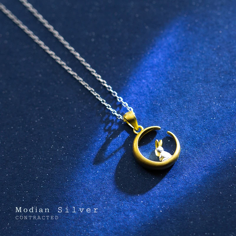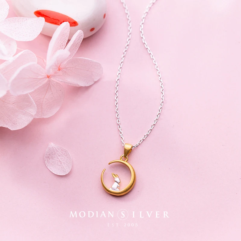 Женская цепочка-подвеска Modian из стерлингового серебра 925 пробы с милым кроликом золотого цвета, Подарочная бижутерия для девушек
