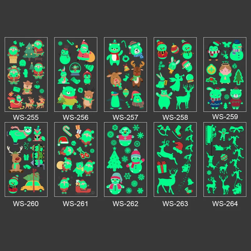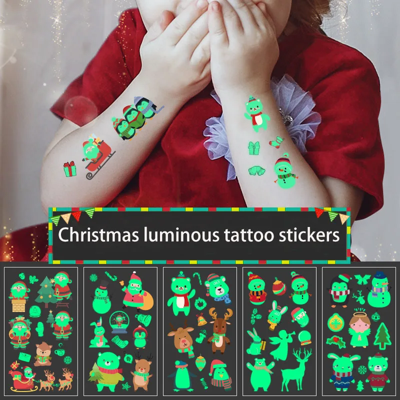 Светящиеся наклейки с татуировками, рождественские водонепроницаемые флуоресцентные наклейки для малышей с лицом, наклейки с различными узорами, маленькое боди-арт для детей